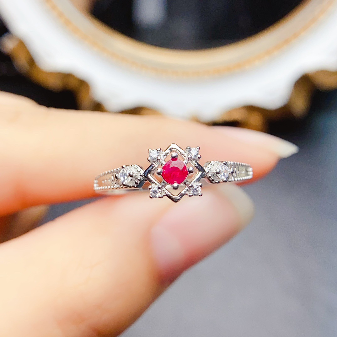 新天然ルビー指輪S925銀モザイク主石3*3mm百合ネット赤爆金女飾り卸売り