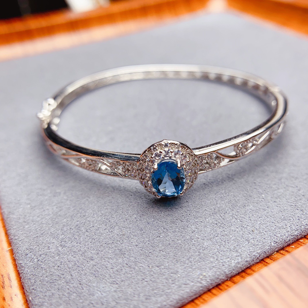 新しい天然サファイアブレスレットS925銀モザイク主石5*7mm百合ネット赤爆金女飾り卸売り