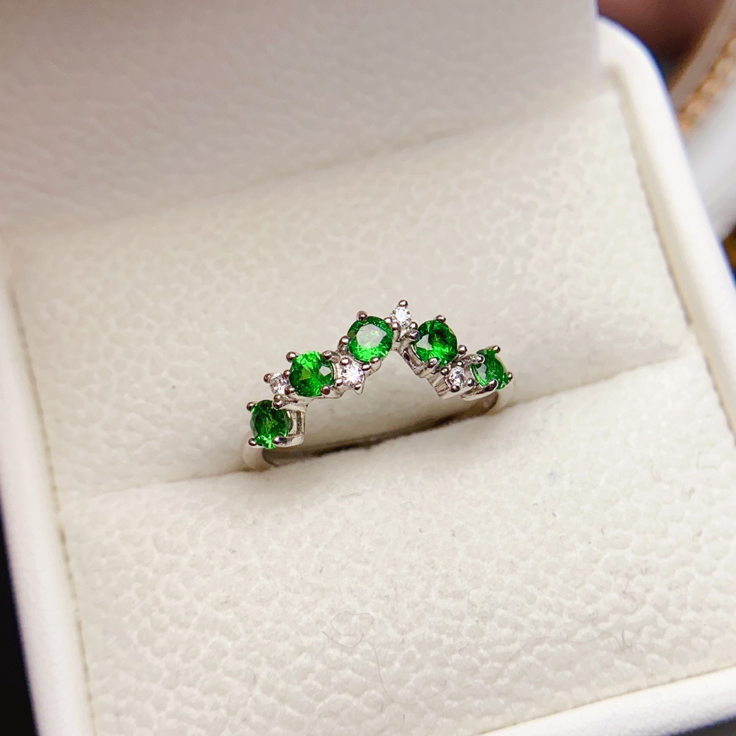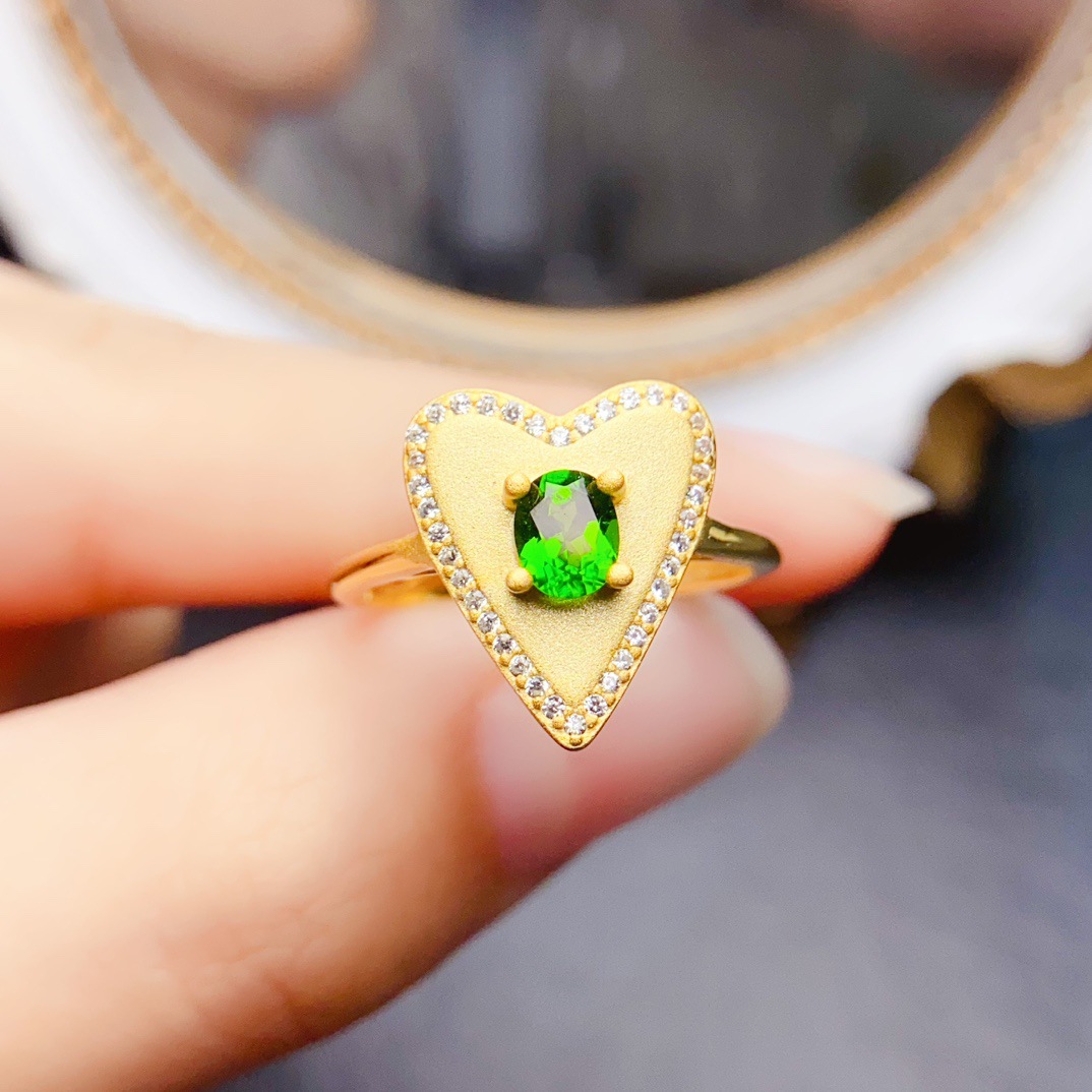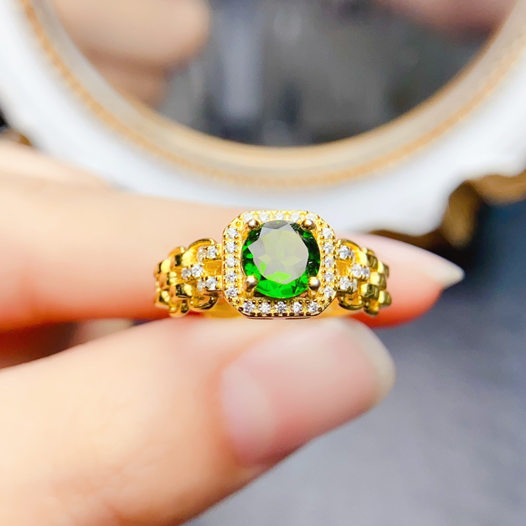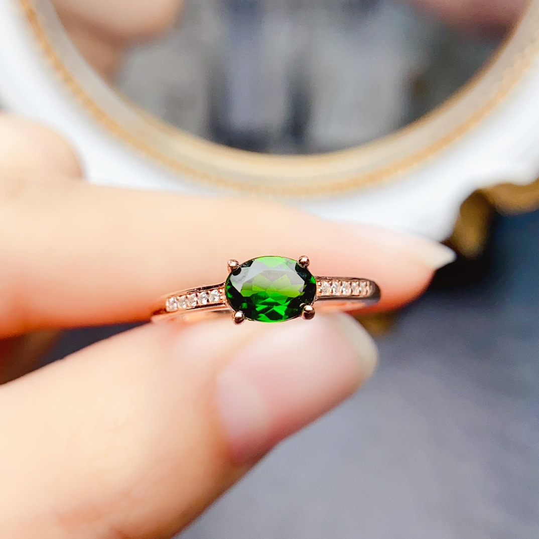 新天然透輝石指輪S925銀モザイク主石5*7mm百合ネット赤爆金女飾り卸売り