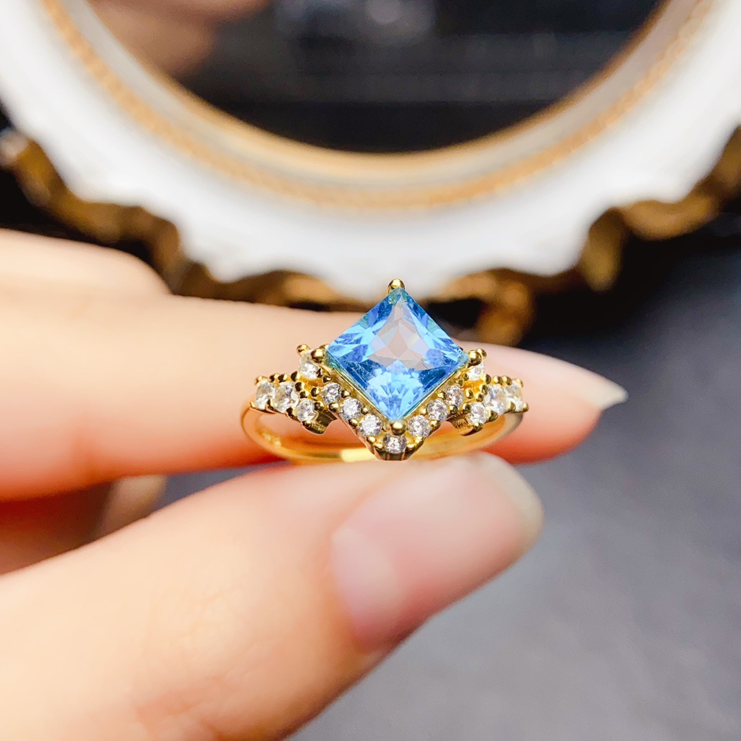 新天然トパーズ指輪S925銀モザイク主石8*8mm百合ネット赤爆金女飾り卸売り