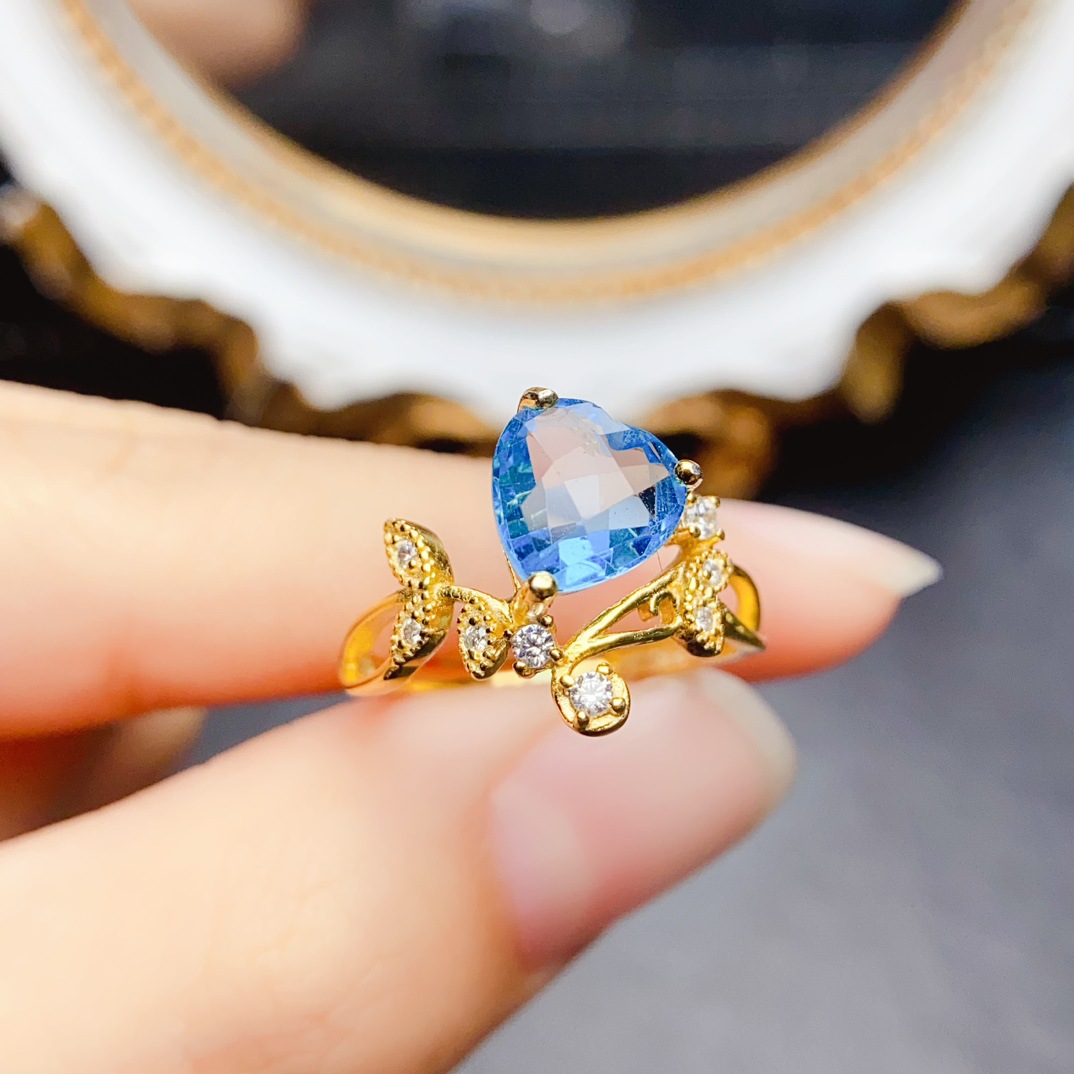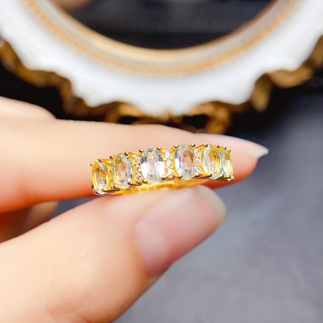 新天然トパーズ石指輪S925銀モザイク主石4*6mm百合ネット赤爆金女飾り卸売り