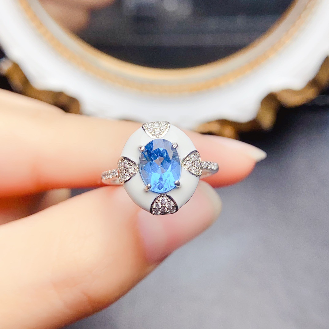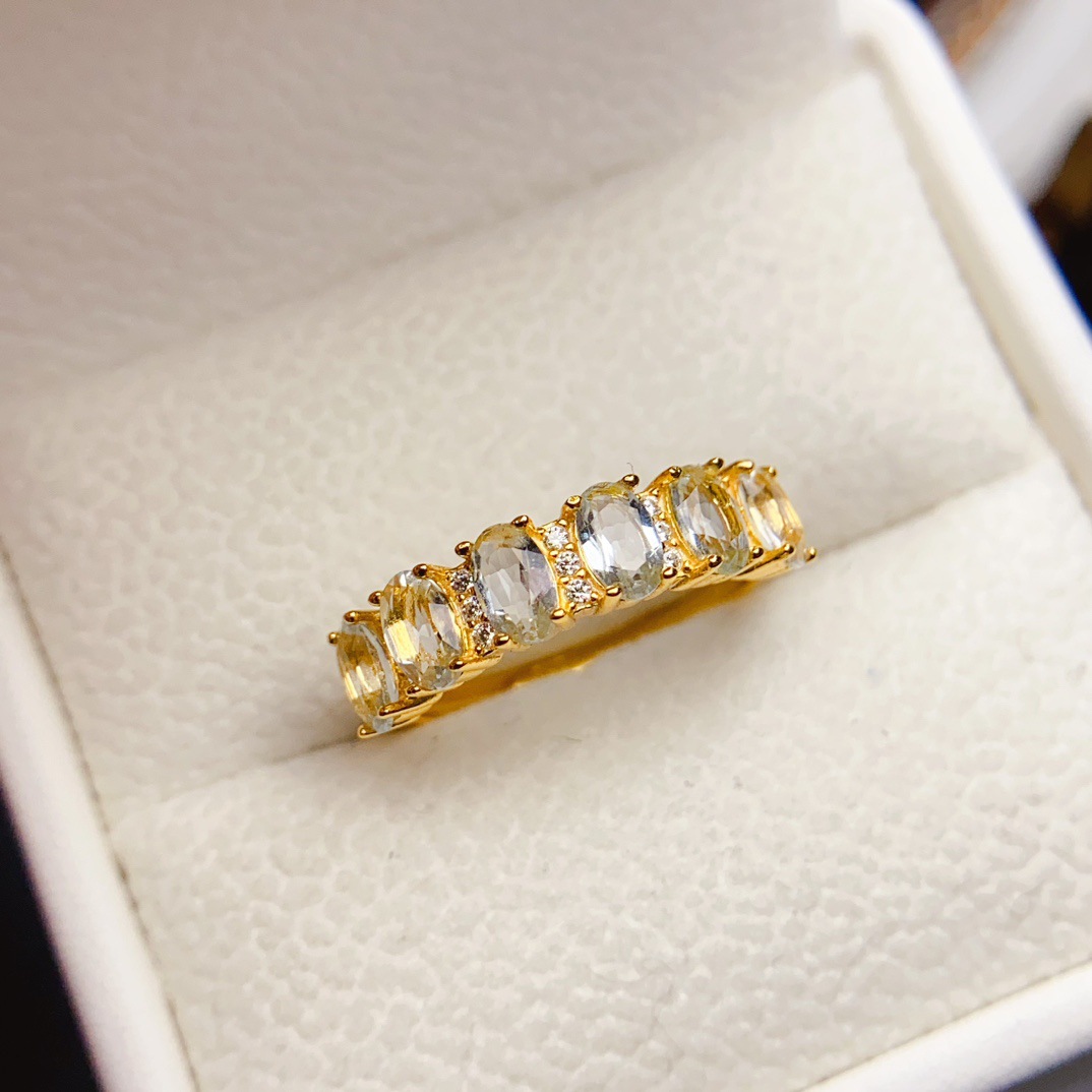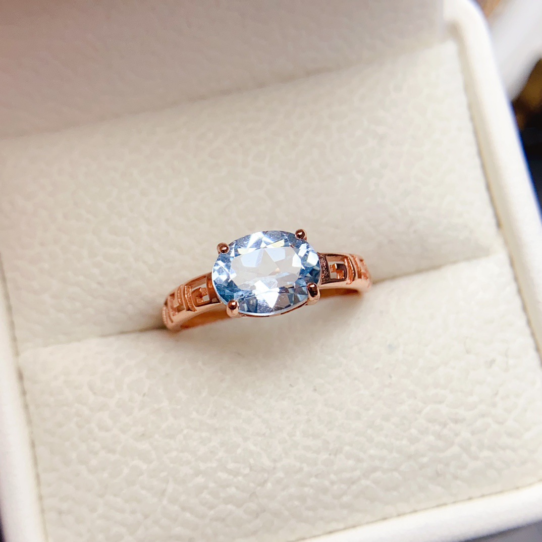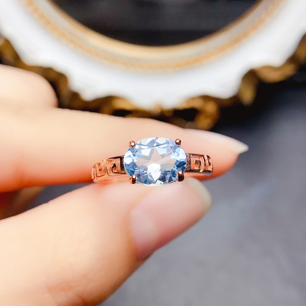 新天然海藍宝指輪S925銀モザイク主石4*6mm百合ネット赤爆金女飾り卸売り