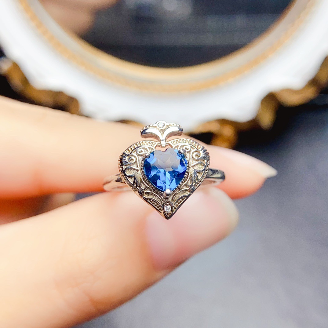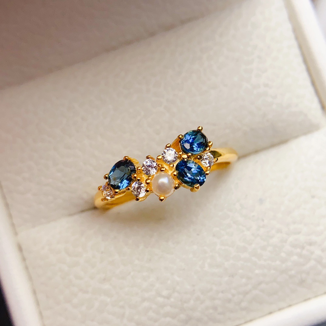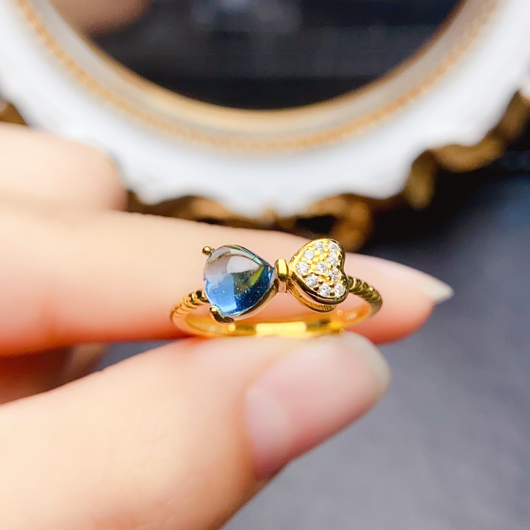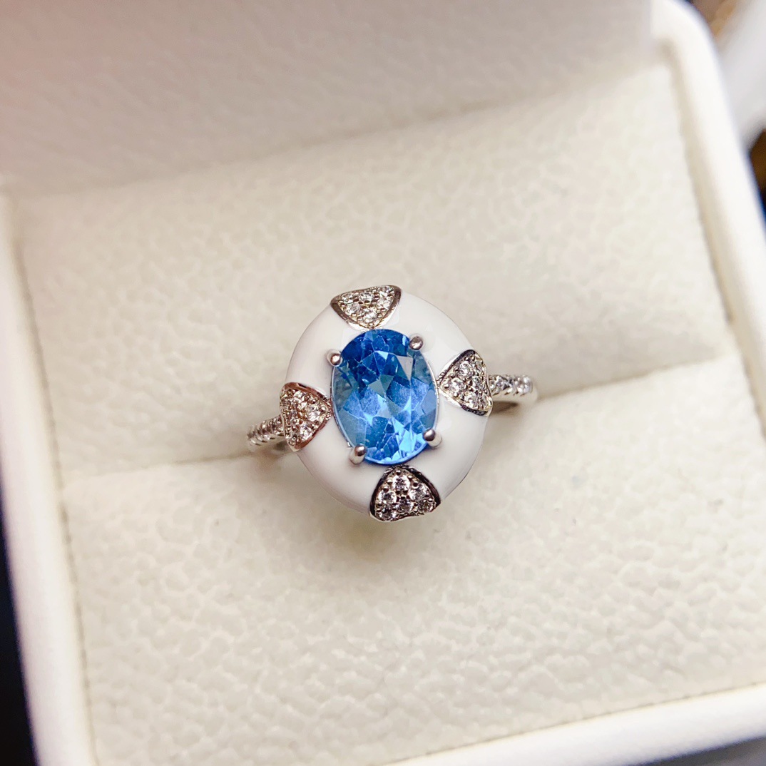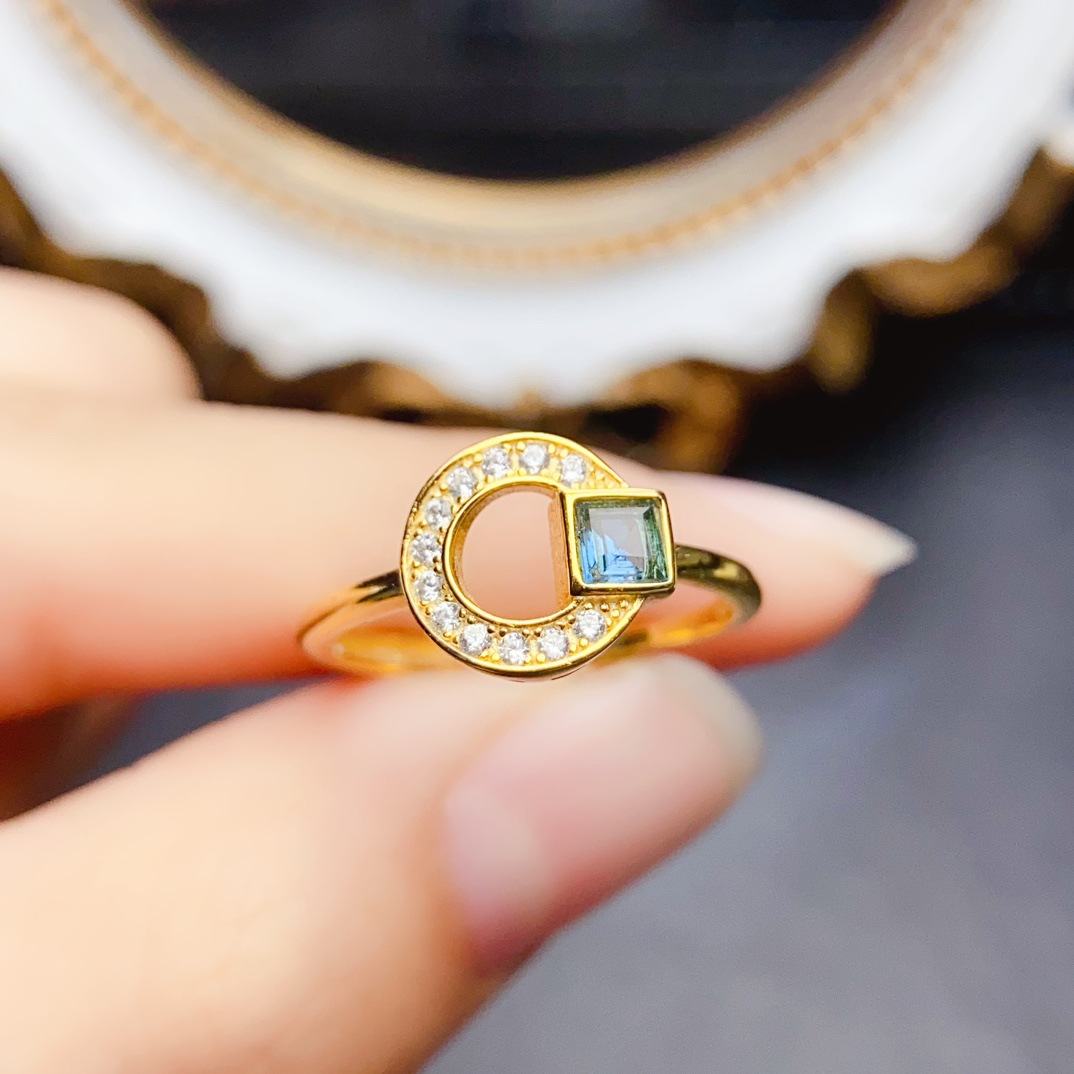 新天然海藍宝指輪S925銀モザイク主石4*6mm百合ネット赤爆金女飾り卸売り
