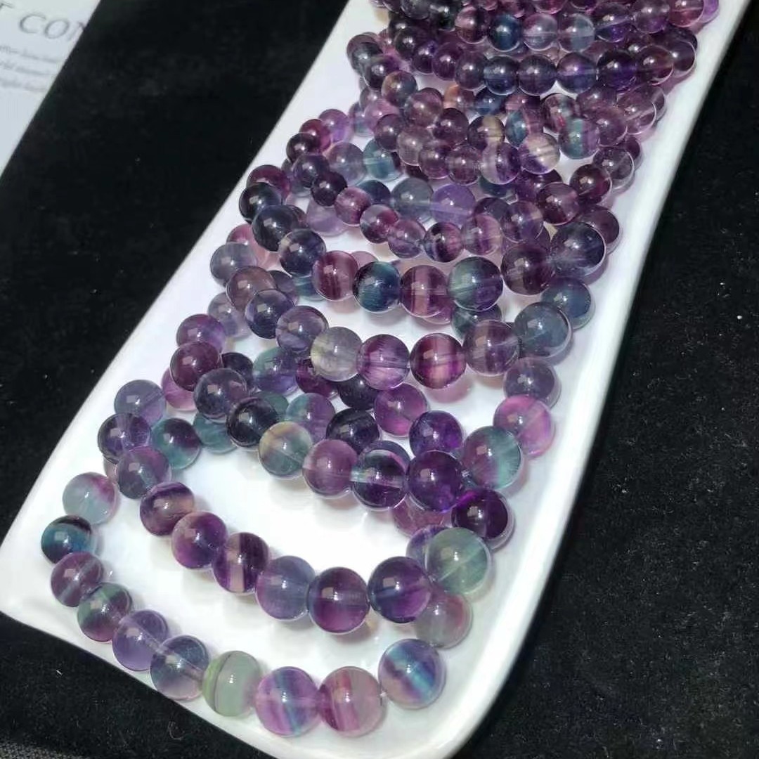 天然伸線蛍石のブレスレットはきれいで、雑結晶の透明な色が豊富でグラデーションが豊富です。