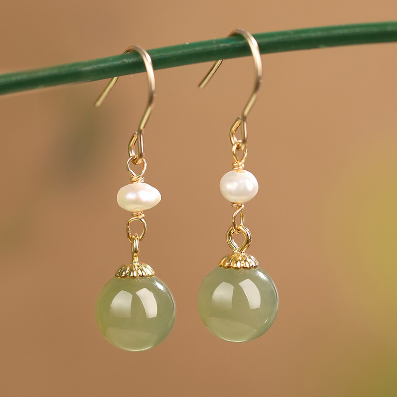 本場『春庭雪』天然淡水真珠和田玉イヤリング優しい気質古風耳飾り高級正規品
