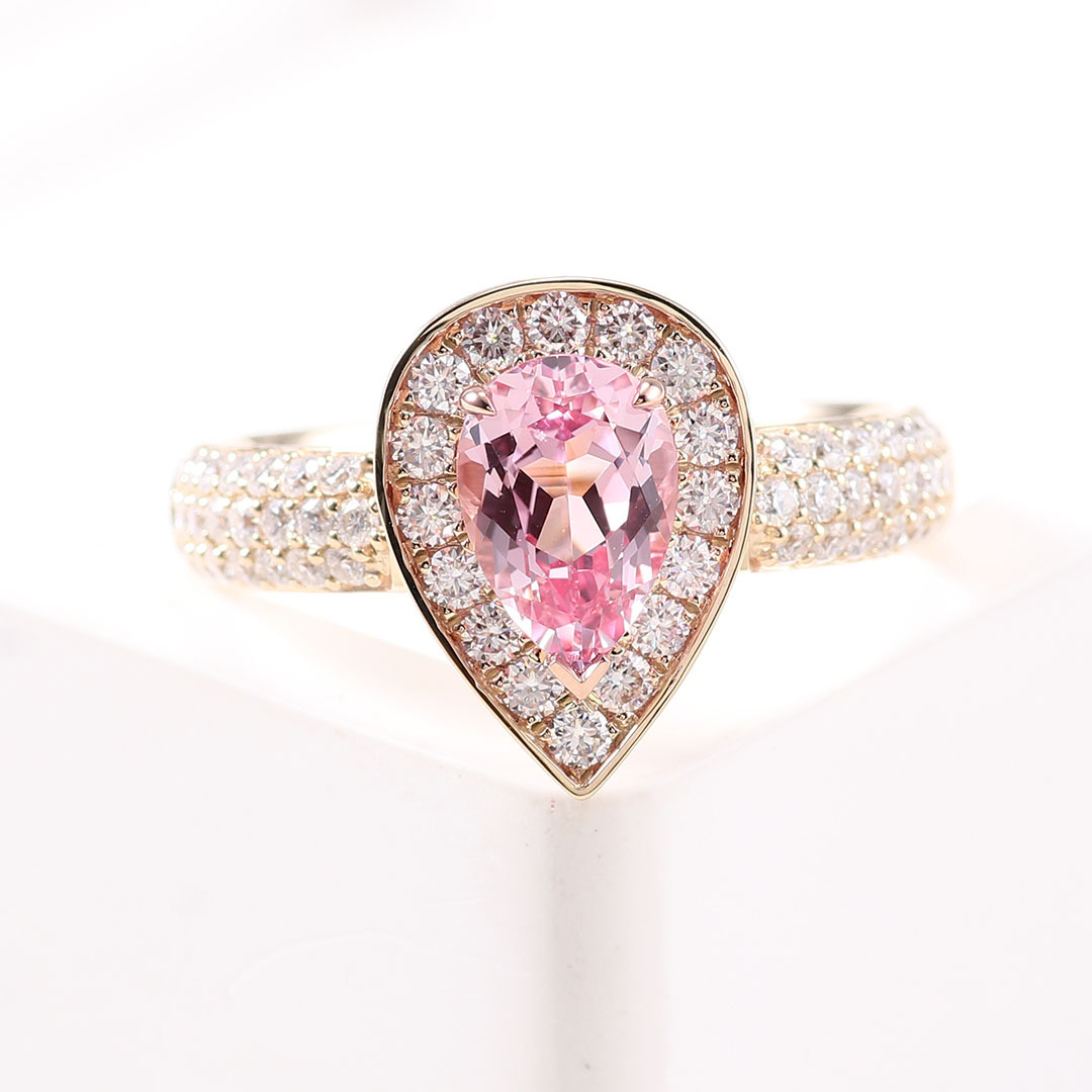 新天然粉藍宝指輪S925銀モザイク主石4*5mm百合ネット赤爆金女飾り卸売り