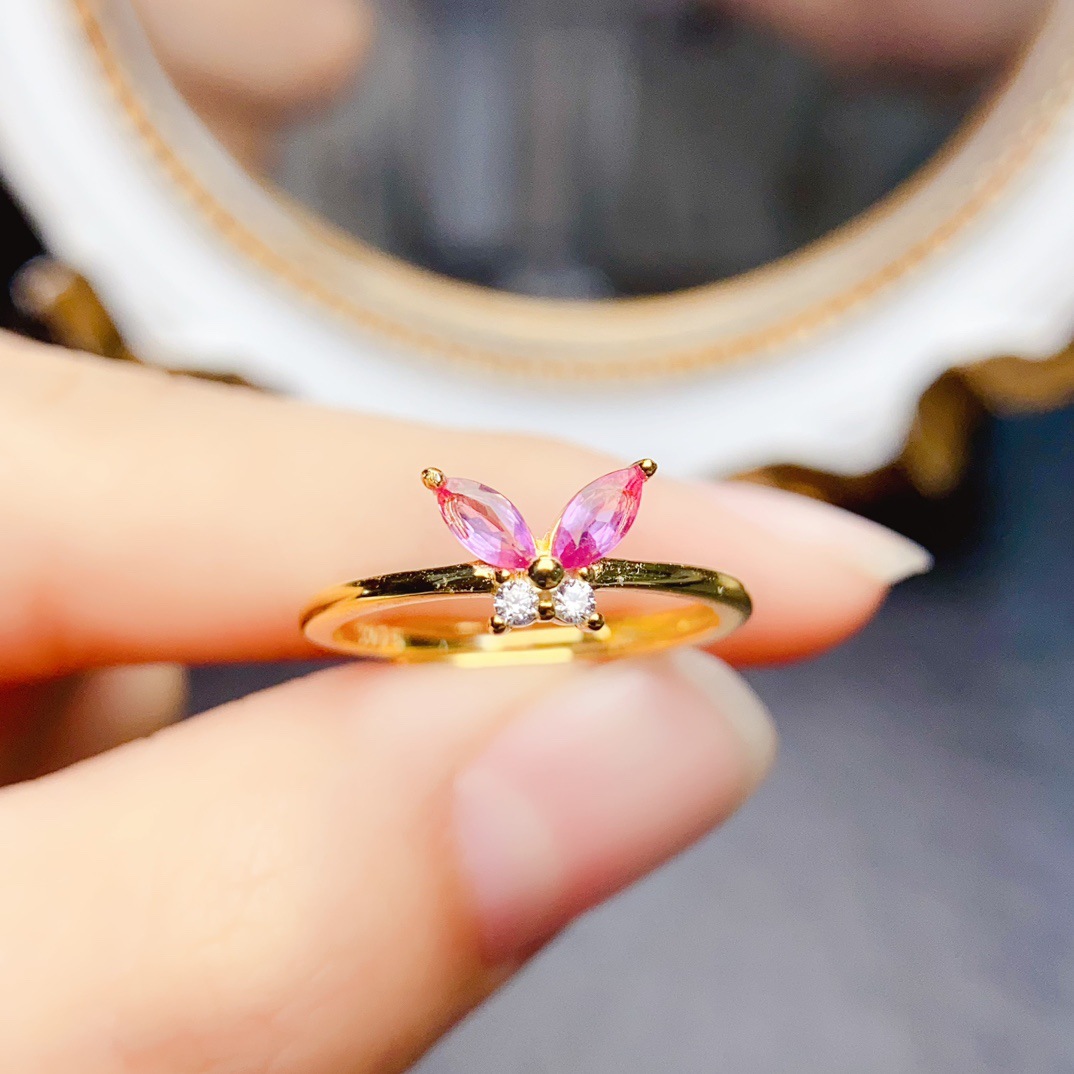 新天然粉藍宝指輪S925銀モザイク主石2 * 5mm百合ネット赤爆金女飾り卸売り