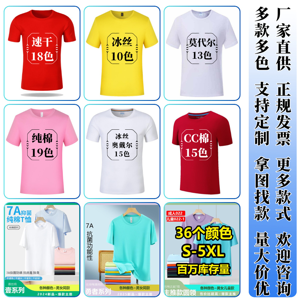 丸襟班服速乾文化広告シャツカスタム印字純色活動チーム服半袖tシャツスポット卸売り