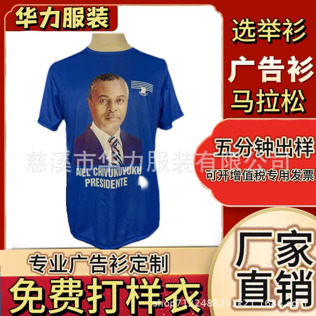 カスタム卸売り全ポリエステル対外貿易文化シャツ丸首半袖選挙シャツ大統領選挙シャツロゴ広告シャツ