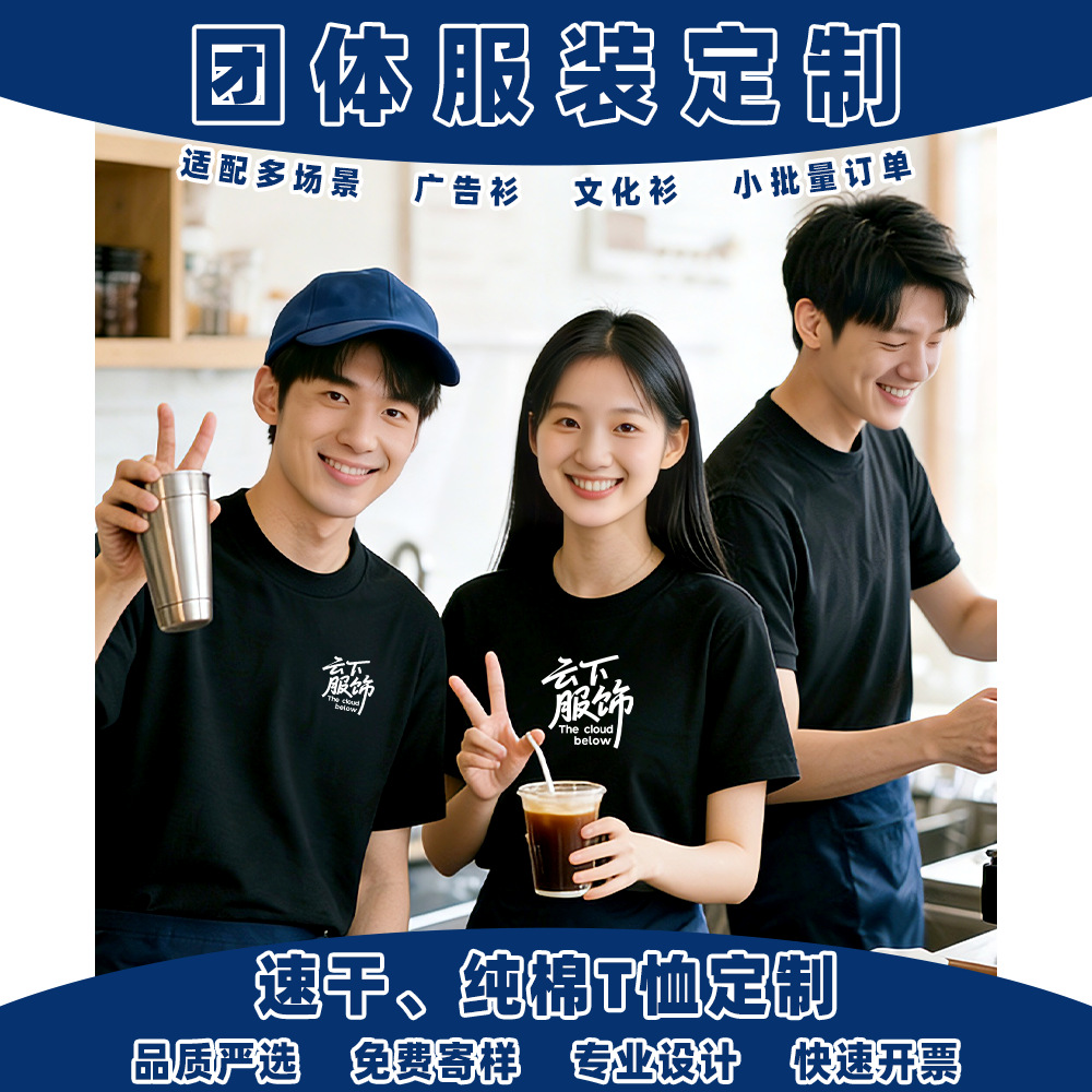広告シャツ文化シャツカスタムクラス服純綿tシャツ印logo団体服丸襟刺繍印刷速乾印刷