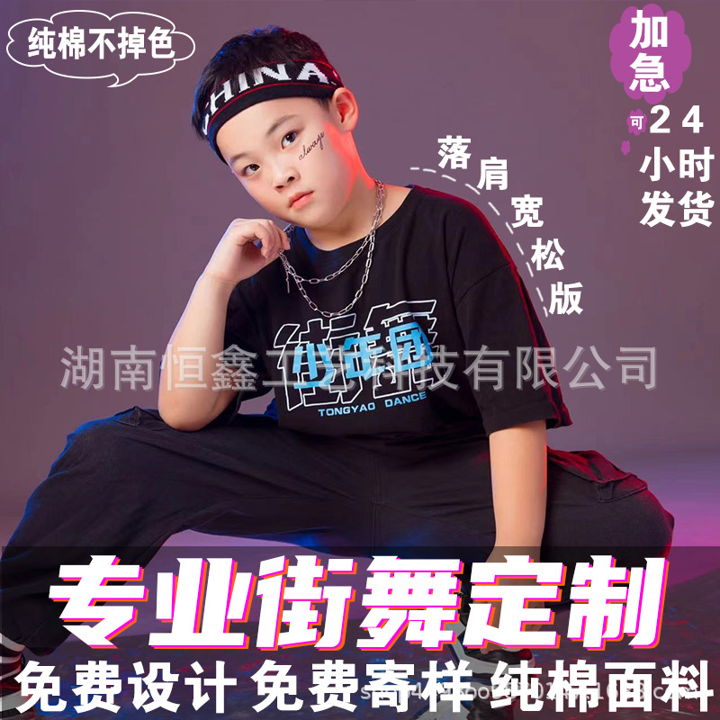 子供用ストリートダンスtオーダーメイドヒップホップhiphopドロップショルダー半袖ダンスショーユニフォームtシャツ上着ゆったり