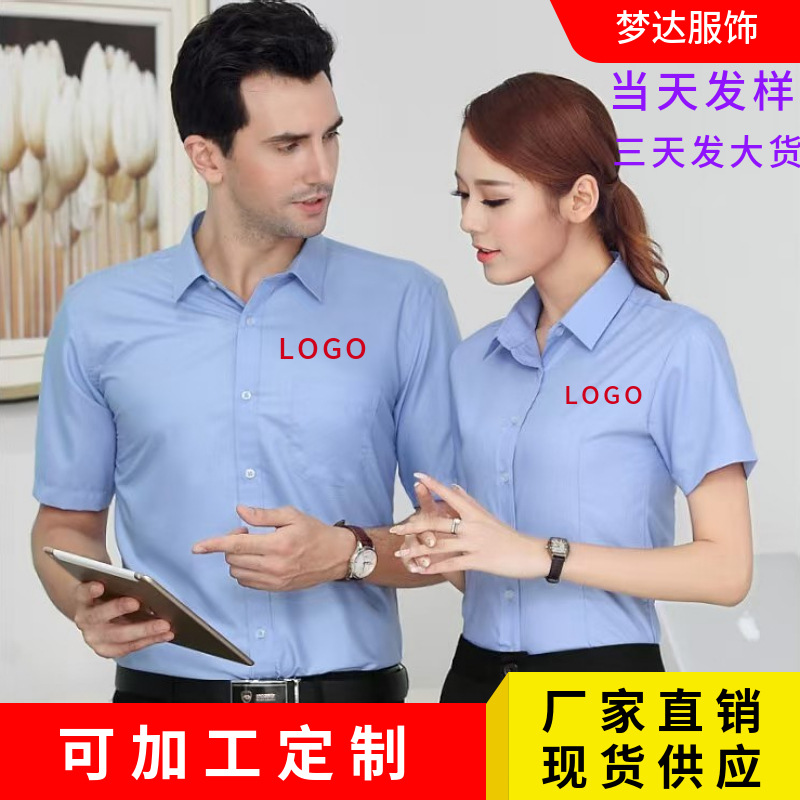 刺繍ロゴ入り細斜織半袖シャツ 男女兼用ビジネスシャツ卸売 ゴールドコットンスリムフィットラペル工場制服