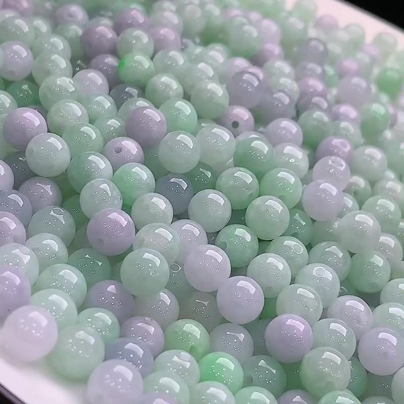 メーカー卸売り天然翡翠a品散珠緑白6mm円珠diyアクセサリービーズブレスレットネックレス玉珠