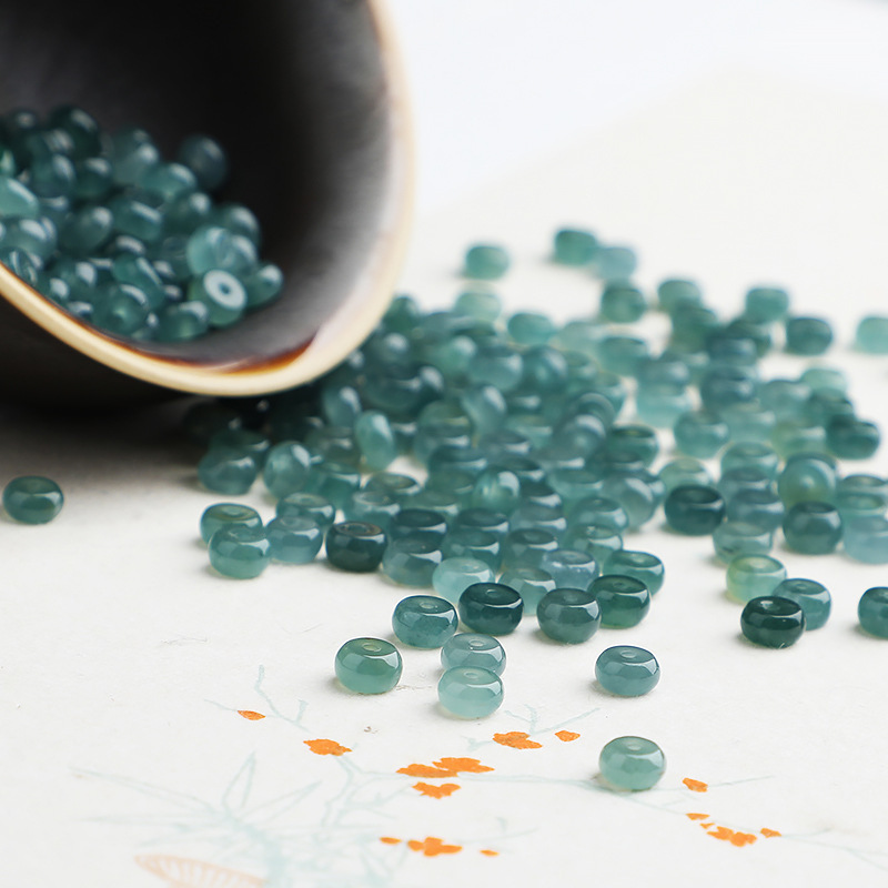 天然A品翡翠散珠アクセサリーそろばんビーズビーズビーズアクセサリーdiy手串ネックレスアクセサリービーズ