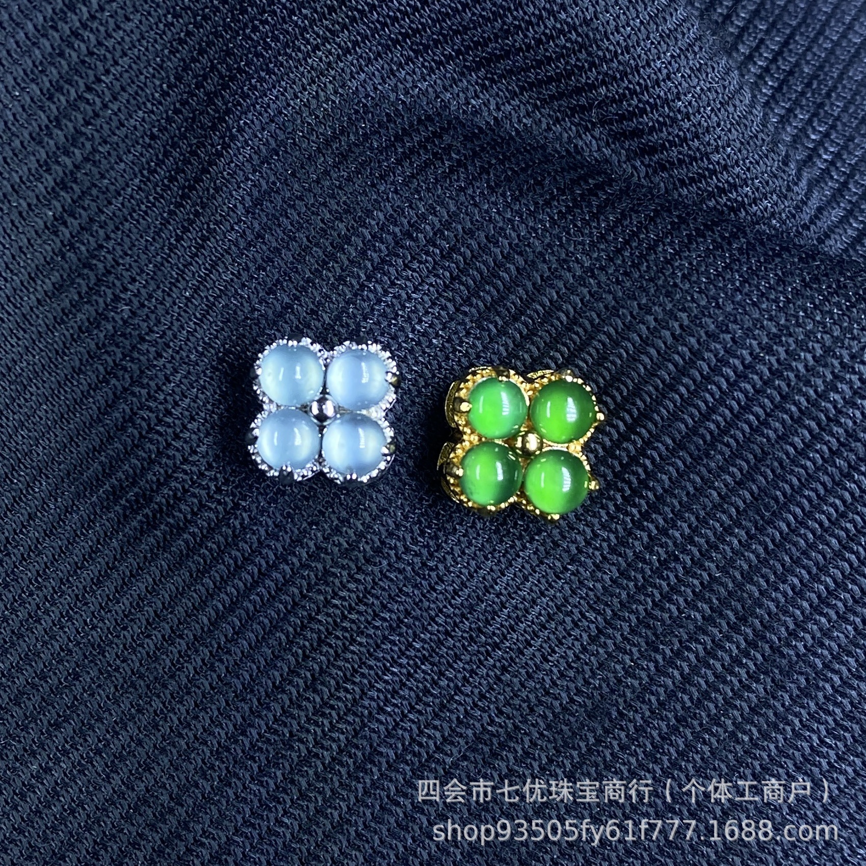 高級ビルマセイコー天然翡翠Aグレード卸売スターリングシルバー象嵌ハイアイスサングリーン幸運の四つ葉のクローバーアクセサリー