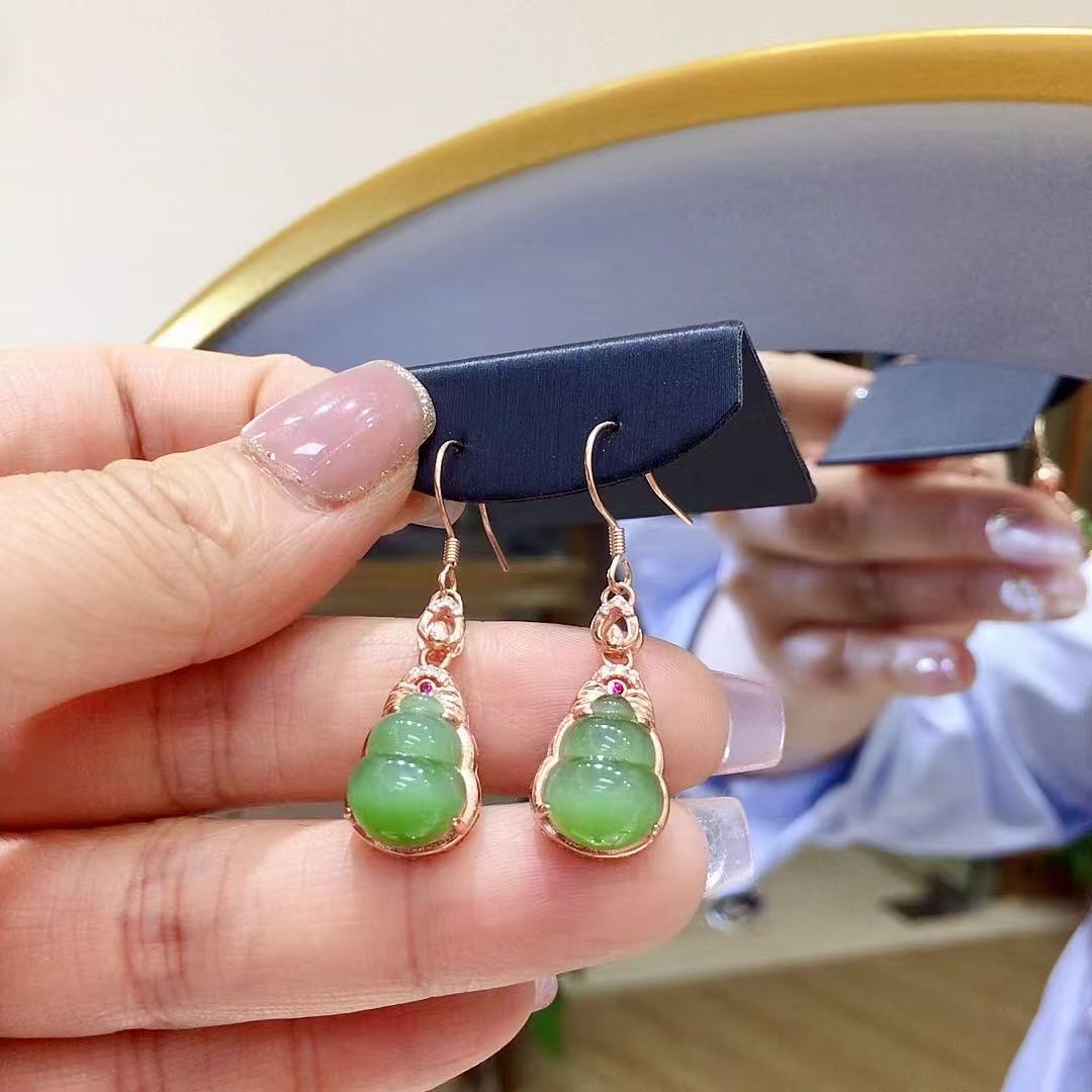 S925銀の装飾は小さい大衆の碧玉の猫の目をはめ込んでヒョウタンのペンダントの女性の種類の多様性を引き出して玉のペンダントをつけます。