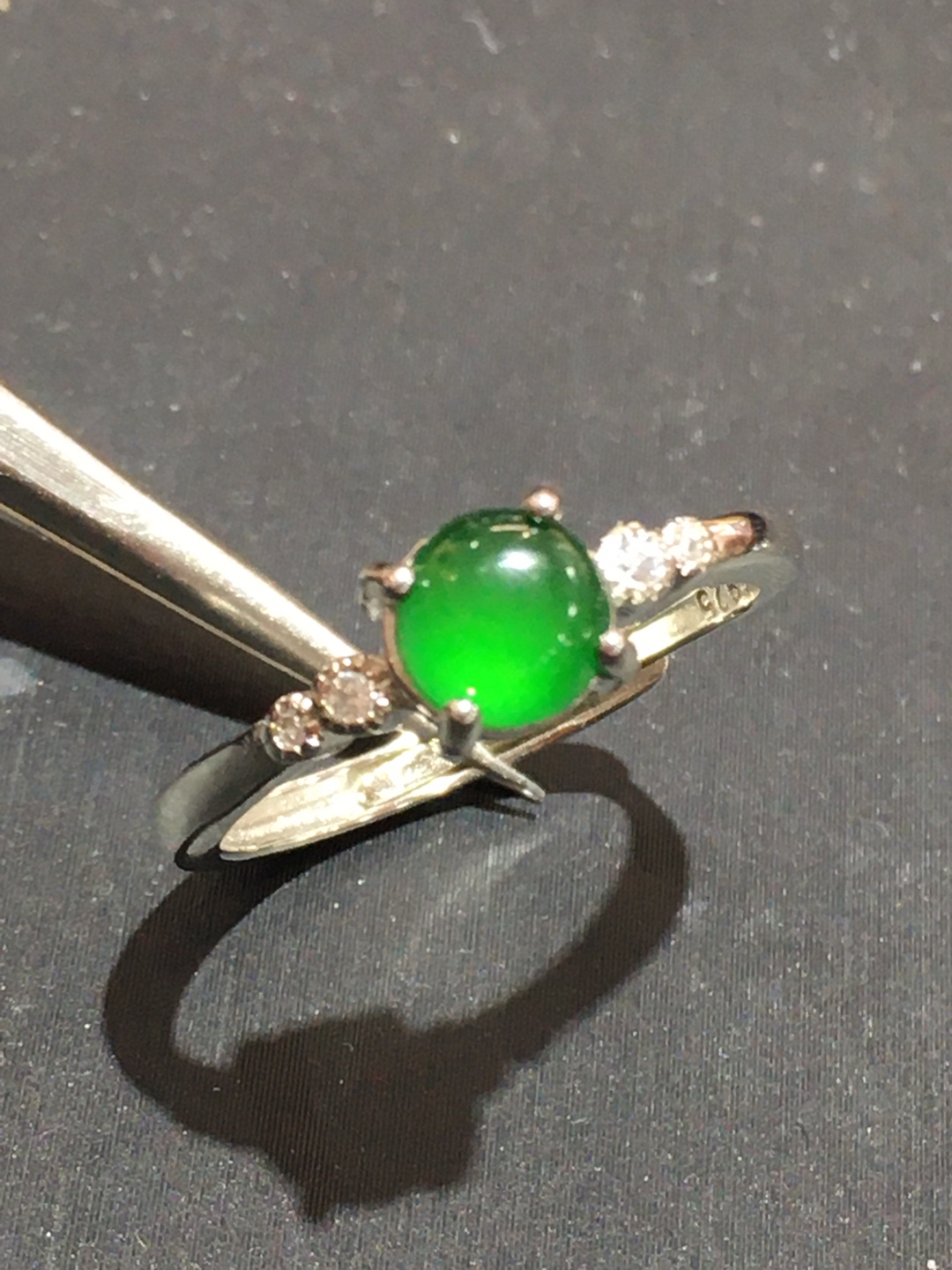 翡翠加工カスタム天然氷種陽緑翡翠指輪女a品卵面裸石戒面18k金モザイク