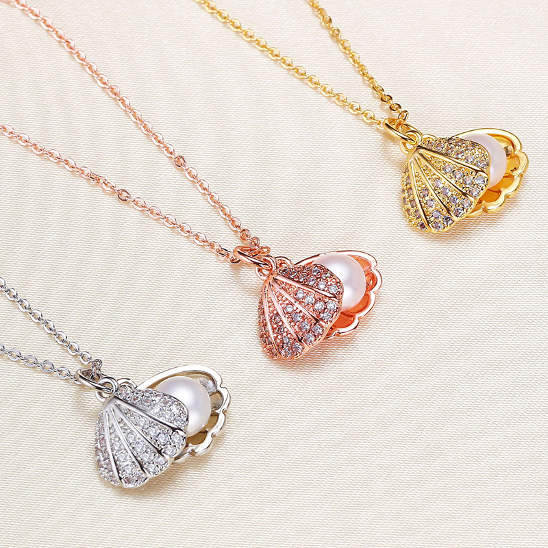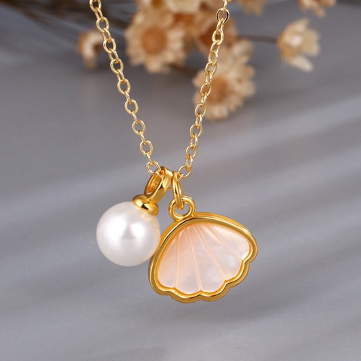 产地直供金色贝壳吊坠珍珠小饰品 网红直播摆摊货源淡水珍珠项链