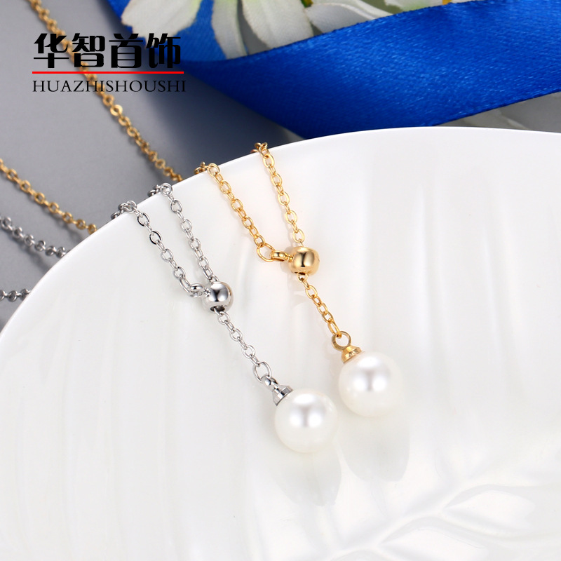 韓国ファッション調節可能なシンプルな女性用パールペンダントネックレス流行ジュエリー空枠完成品卸売