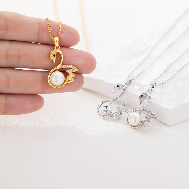 天然淡水真珠モザイクジルコン白鳥ペンダントファッション個性甘いネックレスペンダントアクセサリー完成品空托卸売り