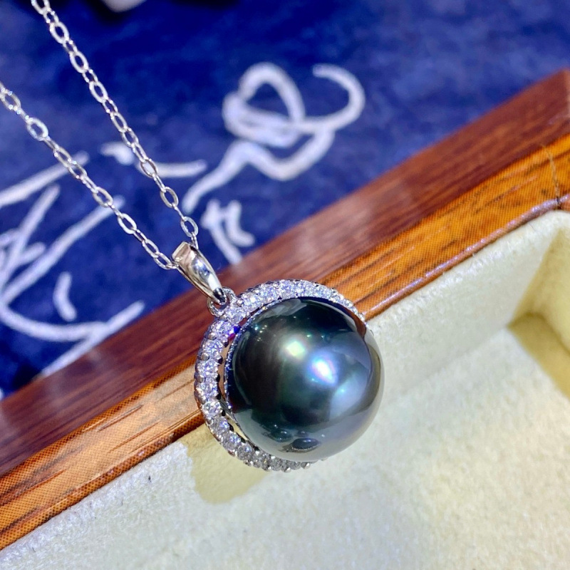 諸及び山下湖天然海水大渓地真珠高品質孔雀緑プラチナ灰裸珠ペンダント金