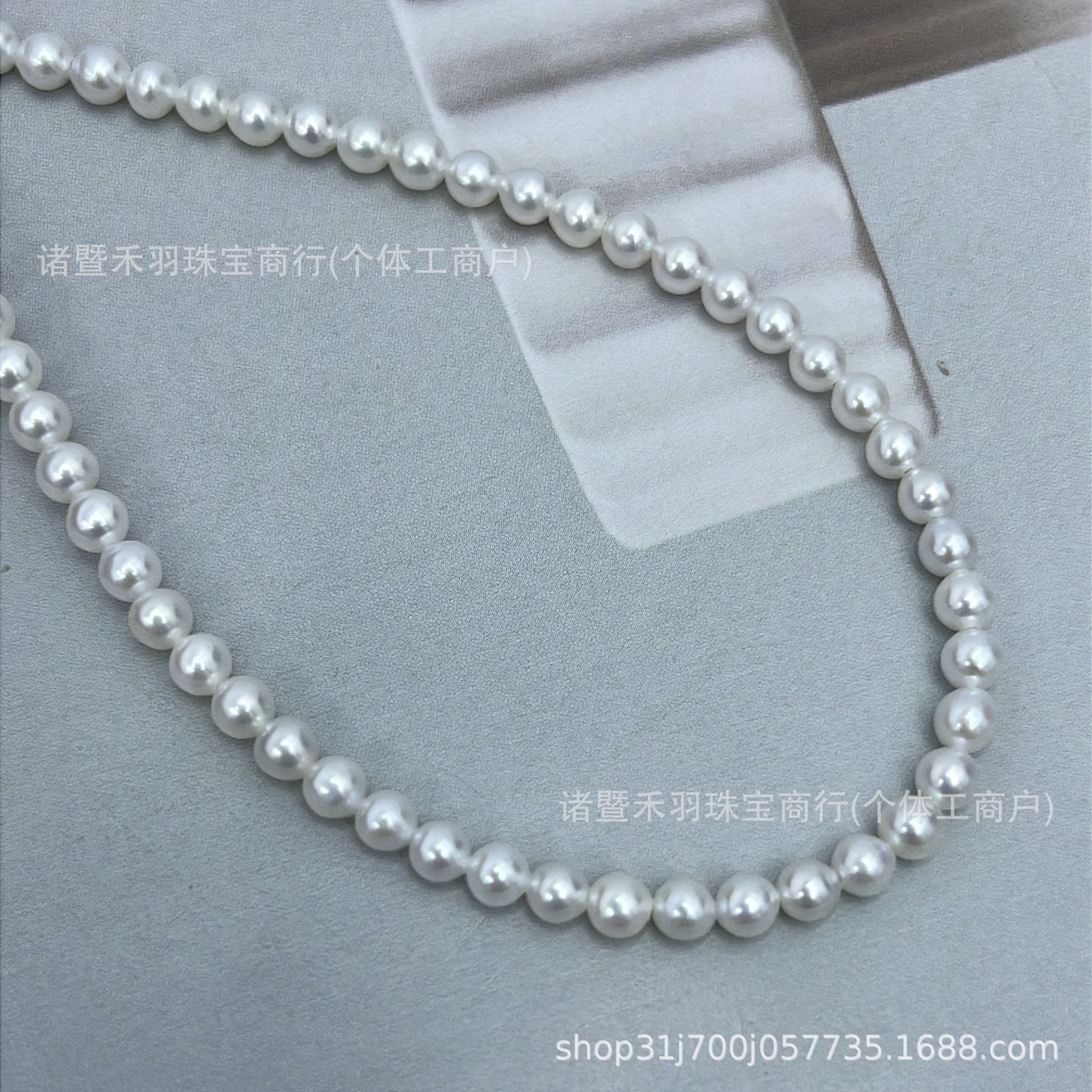 7-8mm淡水パンチ近円真珠ネックレス半製品白色淡水成長紋近円ネックレス卸売り