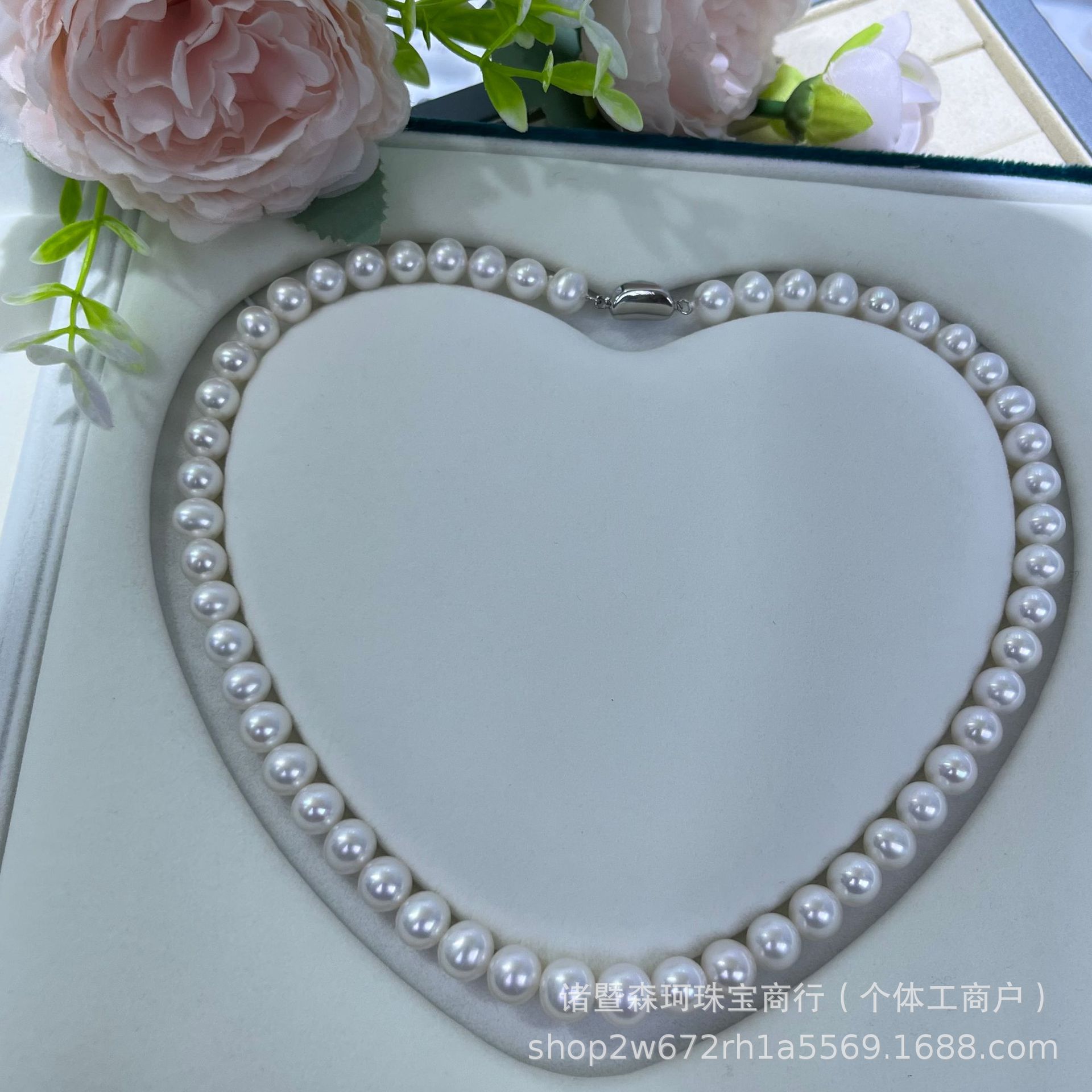 諸及び山下湖天然淡水無核真珠ネックレス8-9mm白亮光近円無欠母プレゼント