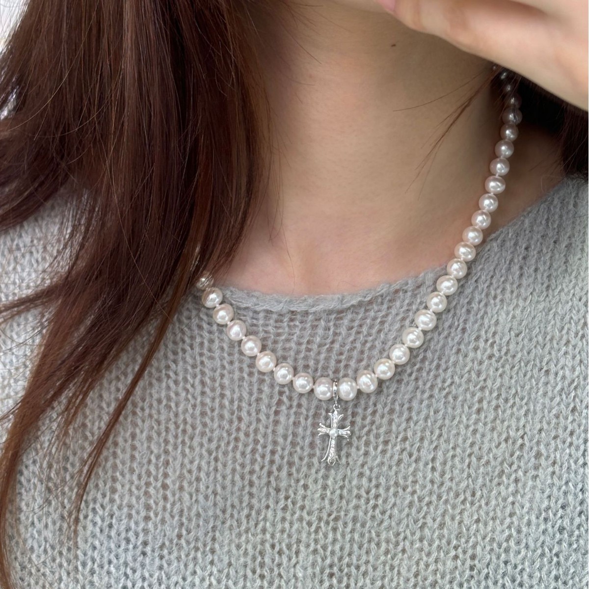 Zhuji Pearl 7-8mm 淡水パール ダブルラグジュアリー ジョイント クロス ペンダント S925 シルバー ネックレス ギフトにおすすめ