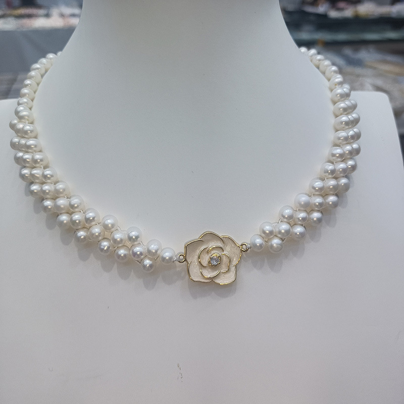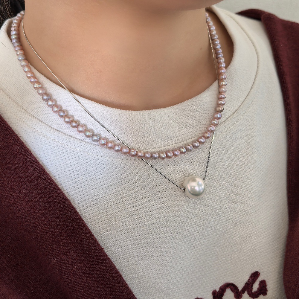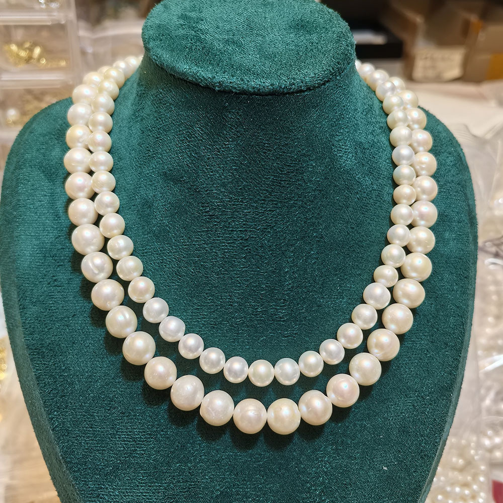 7-8mm淡水akと3-4mmの小さな真珠を組み合わせて二列のネックレスを重ねます。