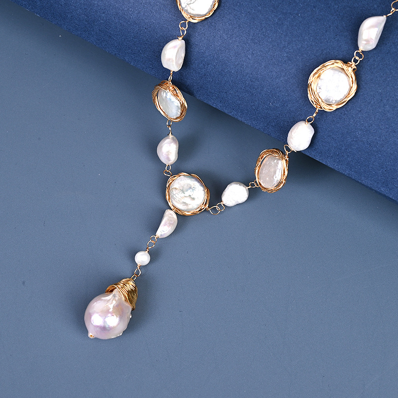 天然真珠/バロック型不規則ネックレスジュエリー レディース鎖骨小粒真珠ファッションネックレス14k