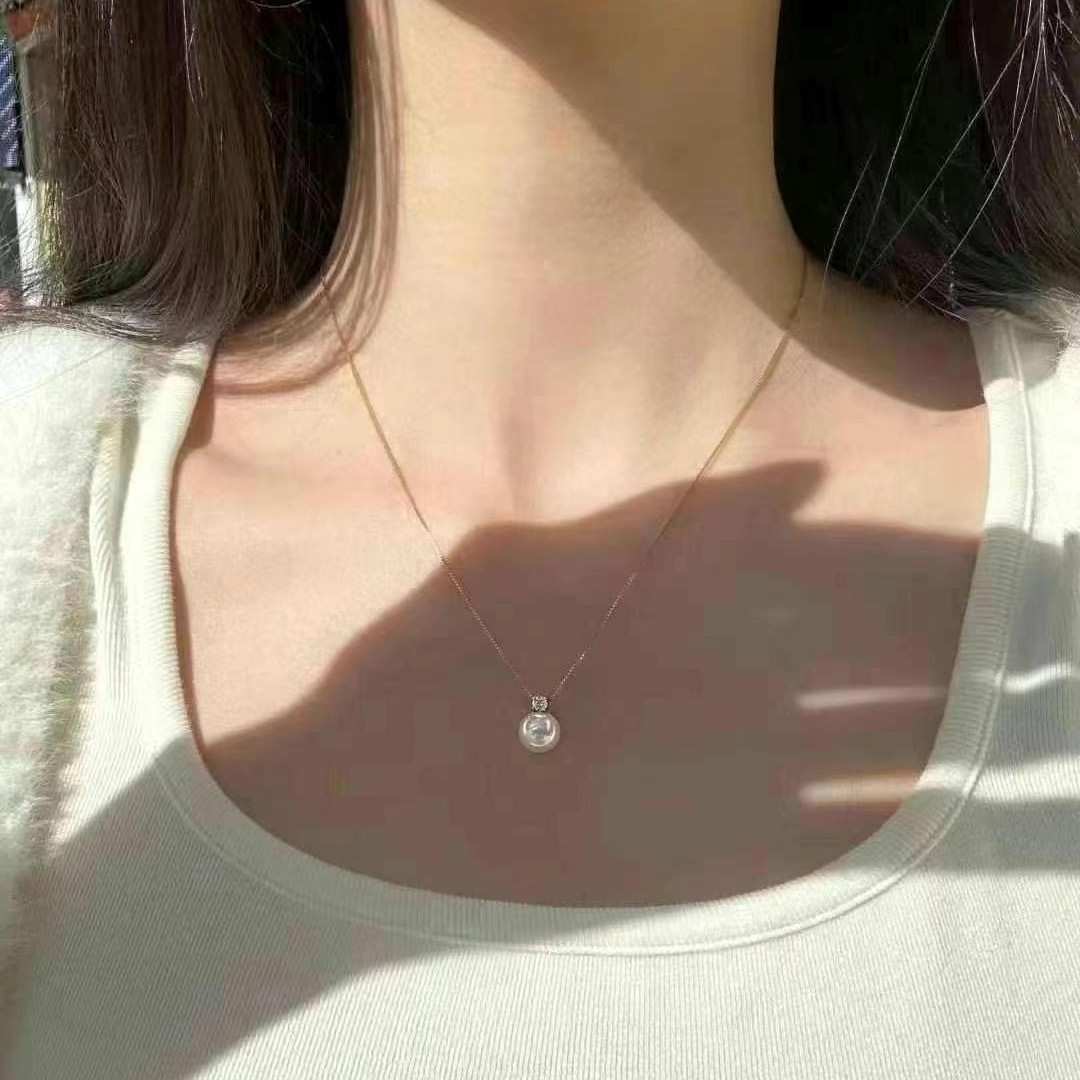 日本天然海水akoya真珠ネックレスペンダントまつげ金18k金ダイヤモンド極光シンプル円形