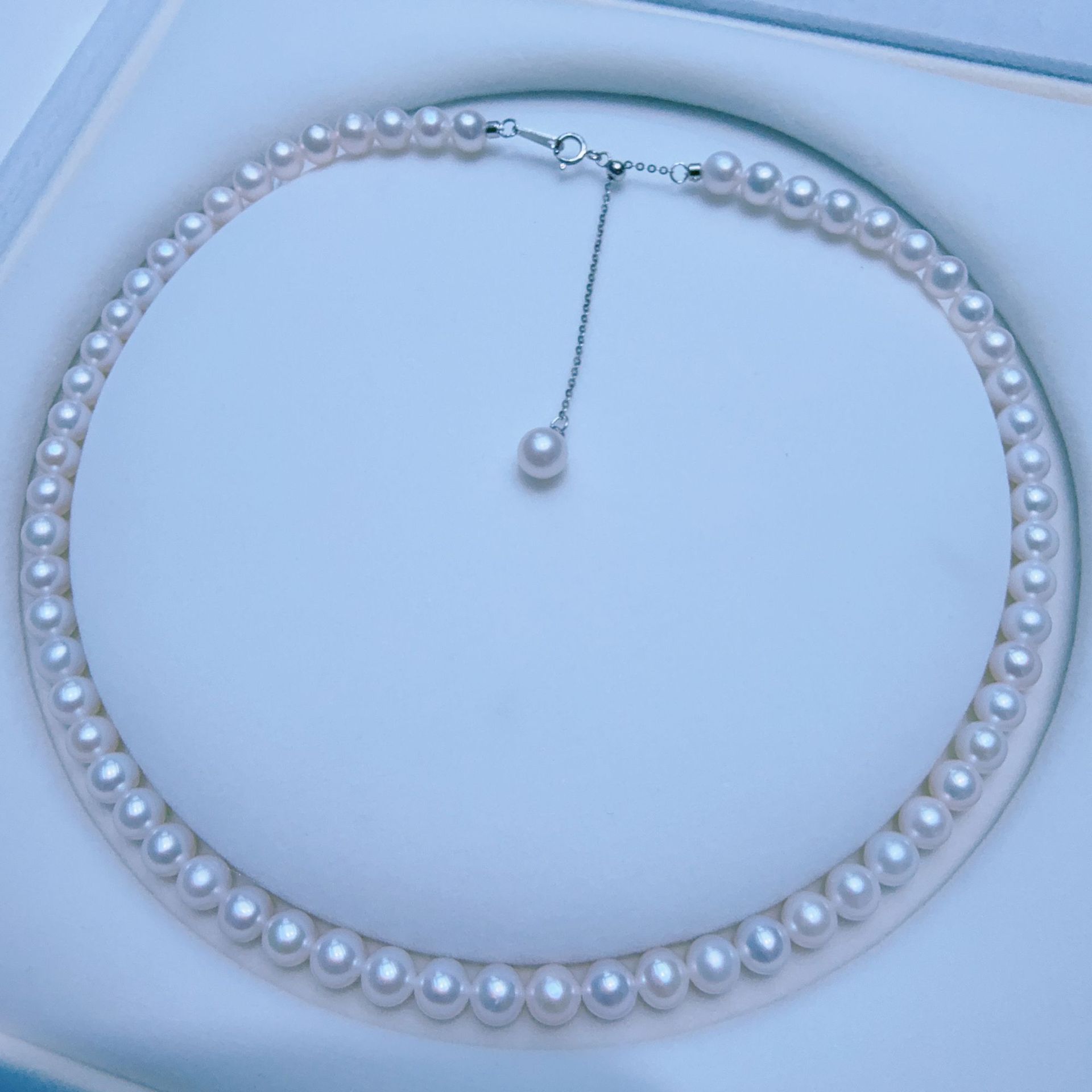 6-7レトロ小衆布契提拉s 925純銀真多麻akoya海水真珠ネックレス