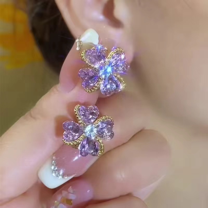 メーカー 925 シルバー針ハイエンド紫色の花のイヤリング女性のニッチデザインインターネット有名人多用途イヤリング 2024 直販