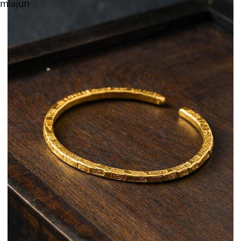 古代の黄金の縁起の良いブレスレット、縁起の良い平和の模様、無地の正方形のオープンレトロな宮殿スタイル、お母さんへのギフト