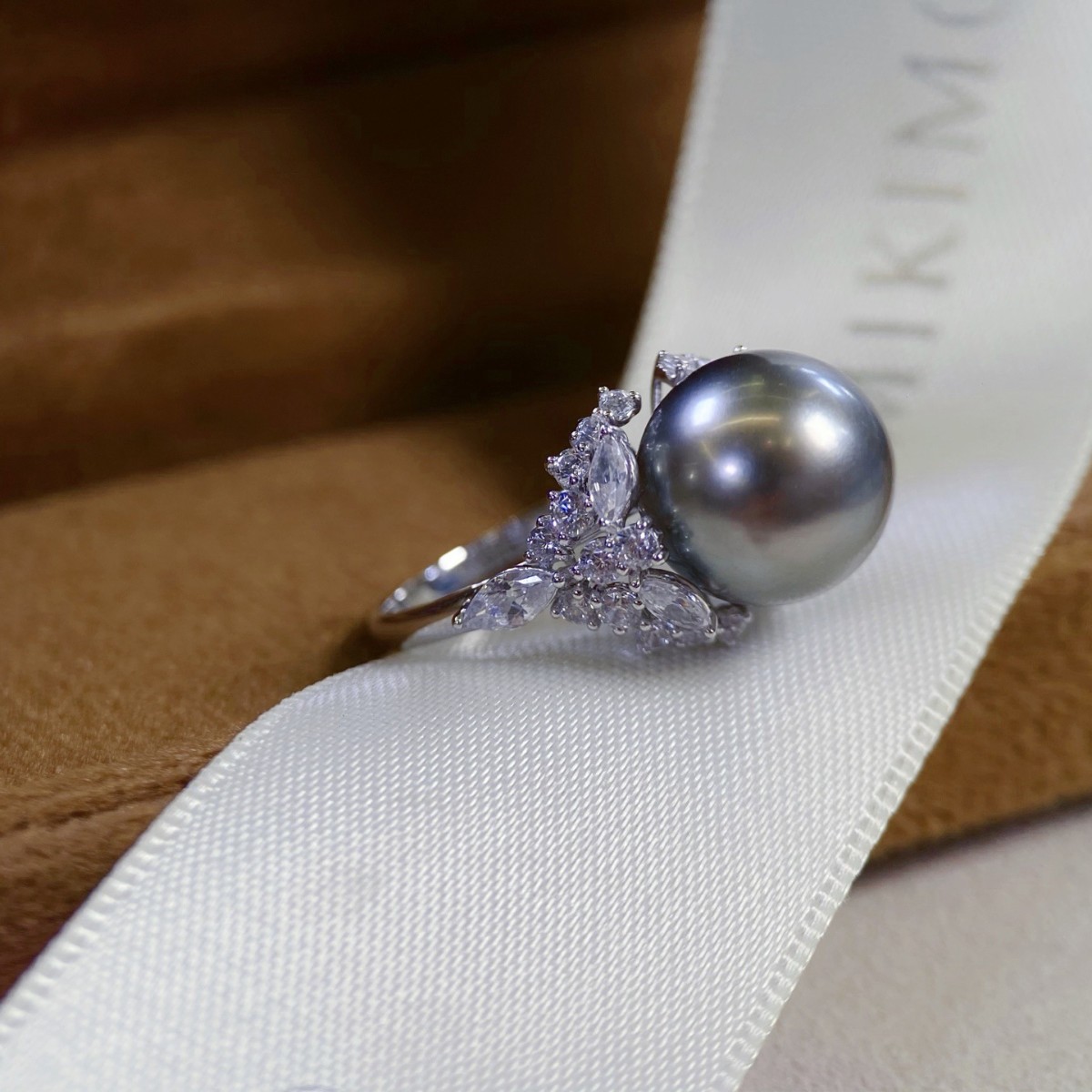 Pt900 アクセサリー 氷と雪の女王のリングはジルコンがちりばめられ、11-12mm パールが付いています。アクセサリーにはビーズは含まれません。