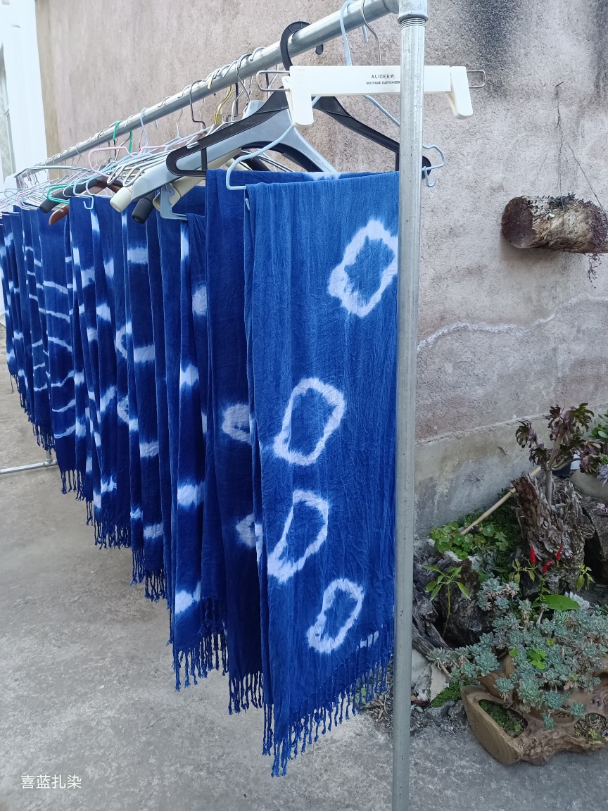 手作りの青い染めのマフラーはマフラーのストールを染めます。