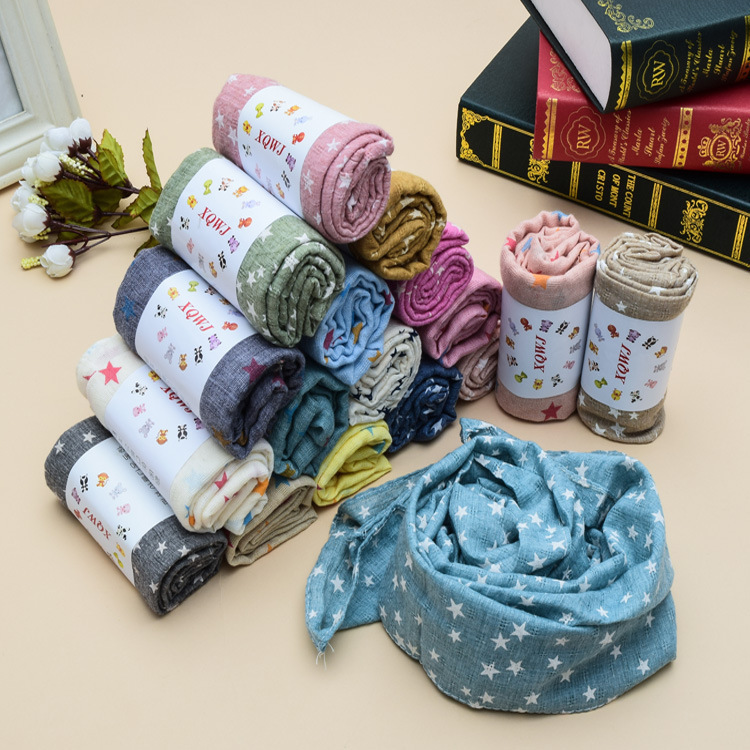 2023秋冬の五角星の超柔らかい子供の綿麻のマフラーは首の新型の保温の子供のマフラーを囲んで卸売りします。