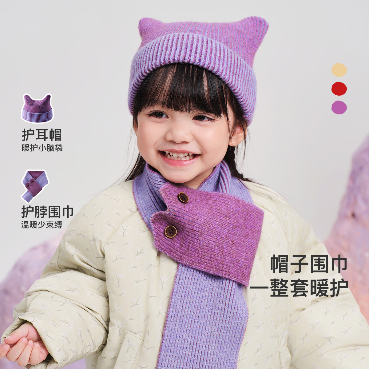 子供用のかわいい帽子とマフラーのセット、子供服、2024年冬の新作、赤ちゃん用の暖かく快適なツーピースセット