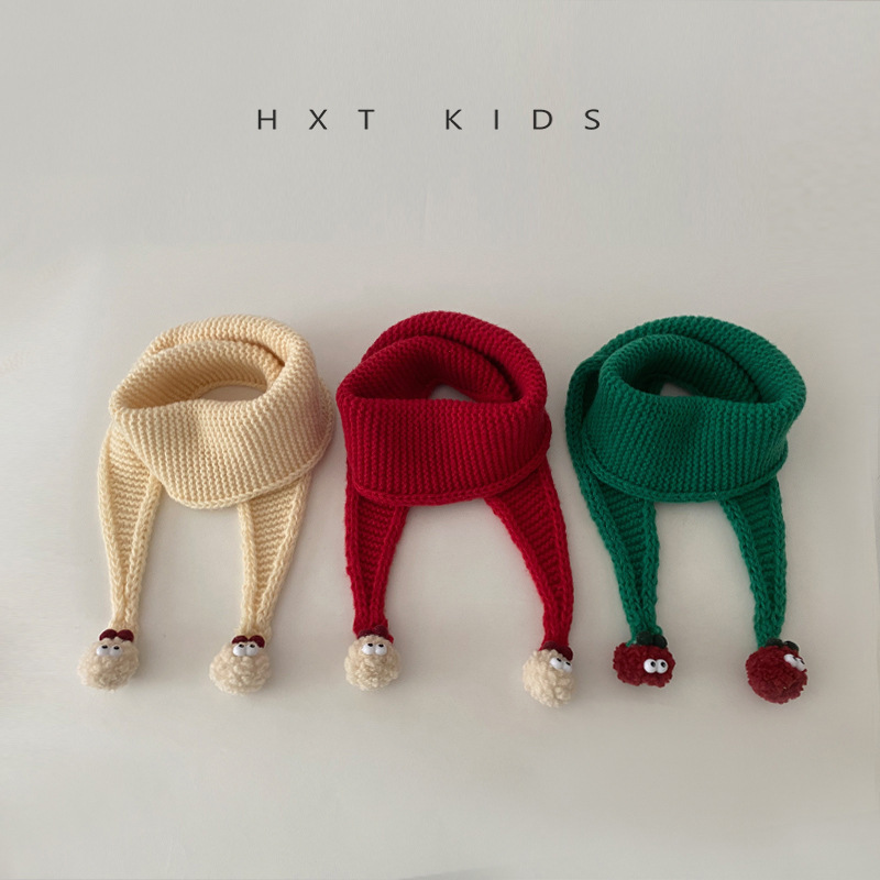 クリスマス子供用スカーフ 冬 2025年新作 レッド 女の子 男の子 ベビー 韓国風 保温ニットクロススカーフ