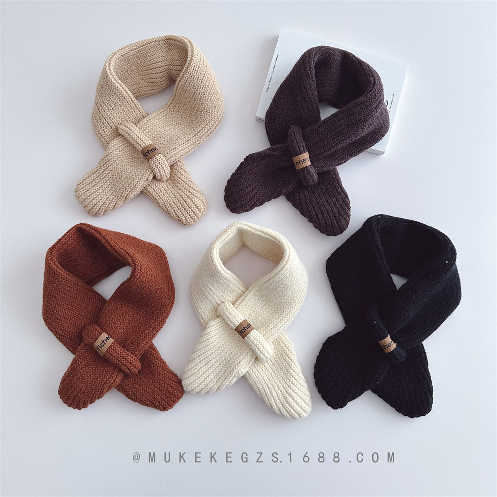 子供用ラベル編みマフラー男女赤ちゃんファッション純色親子ファッションモデル秋冬子供保温マフラーカバー