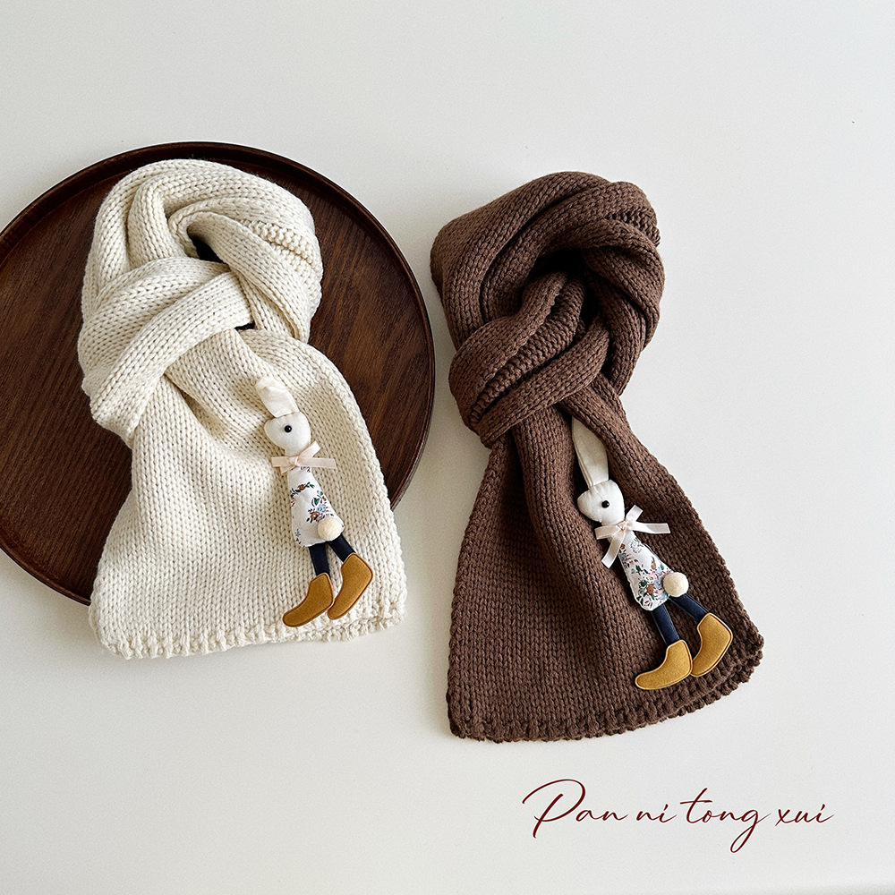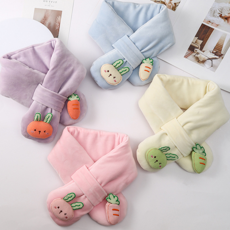 秋冬子供ニット保温マフラー男の子漫画かわいいウサギ女の子純色毛糸マフラー