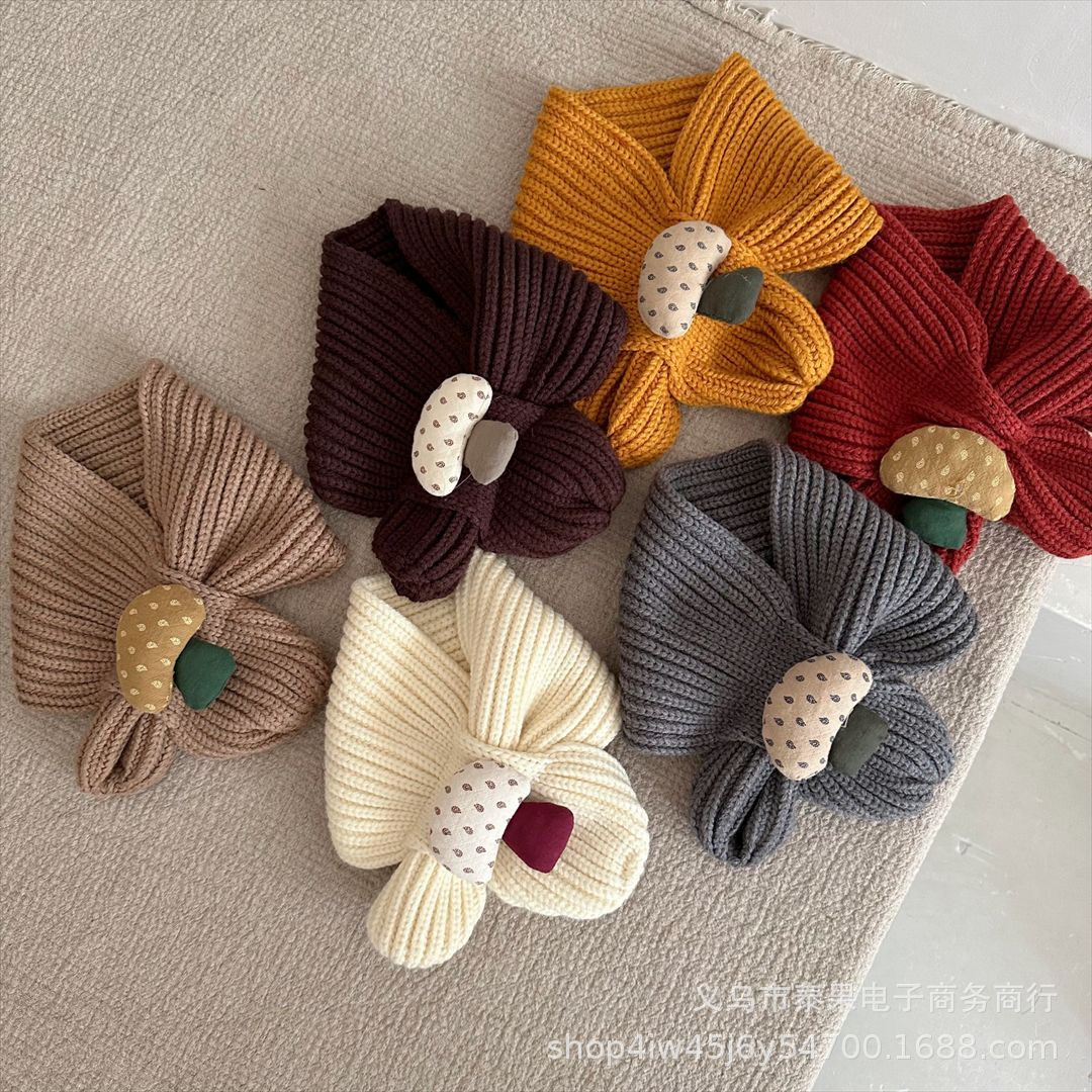 韓国版ins赤ちゃんかわいいキノコニットマフラー秋冬男女児童毛糸保温交差マフラー潮