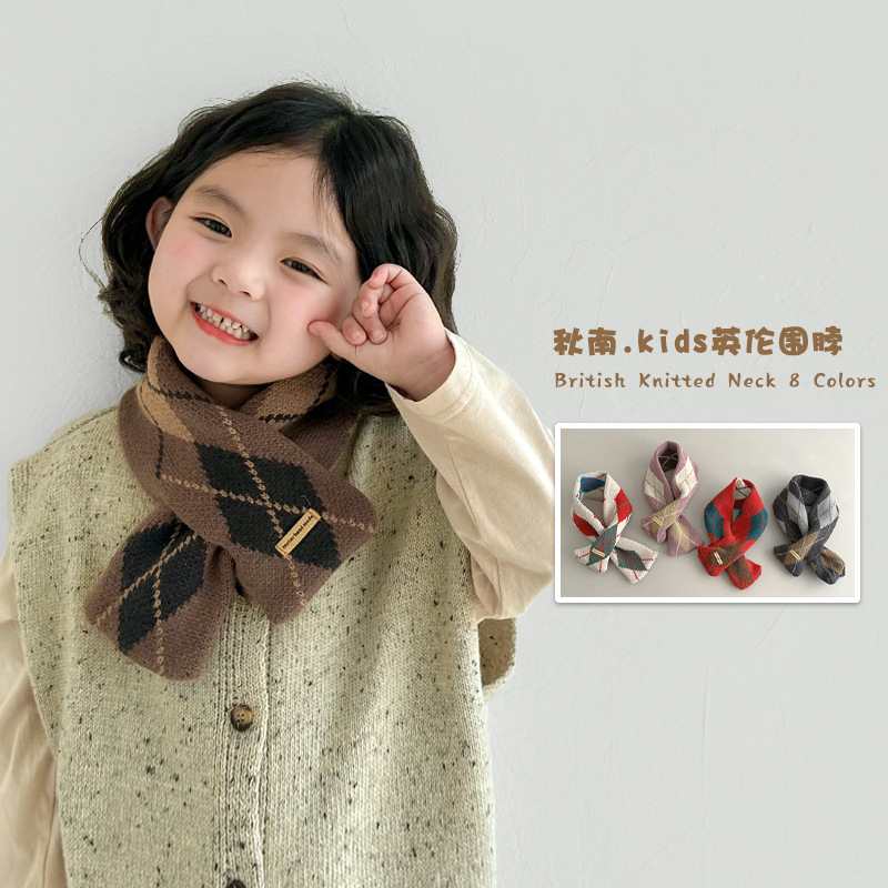 秋南韓国の子供用マフラー冬の男の子と女の子の英倫風が厚くて暖かいニットの赤ちゃんが首を囲んで卸売りします。