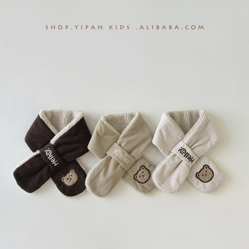 一潘韓国児童マフラー冬の新型ins保温交差ベアーが首を囲んでいる男の子の女の子が首を囲んで卸売りする
