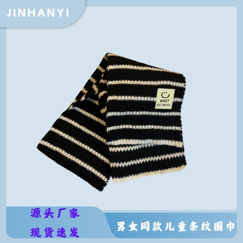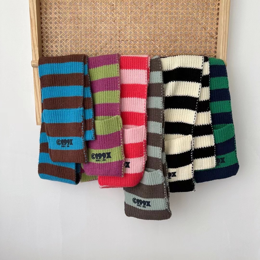 韓国版ins風子供個性ポケットストライプ毛糸ニット防寒マフラー