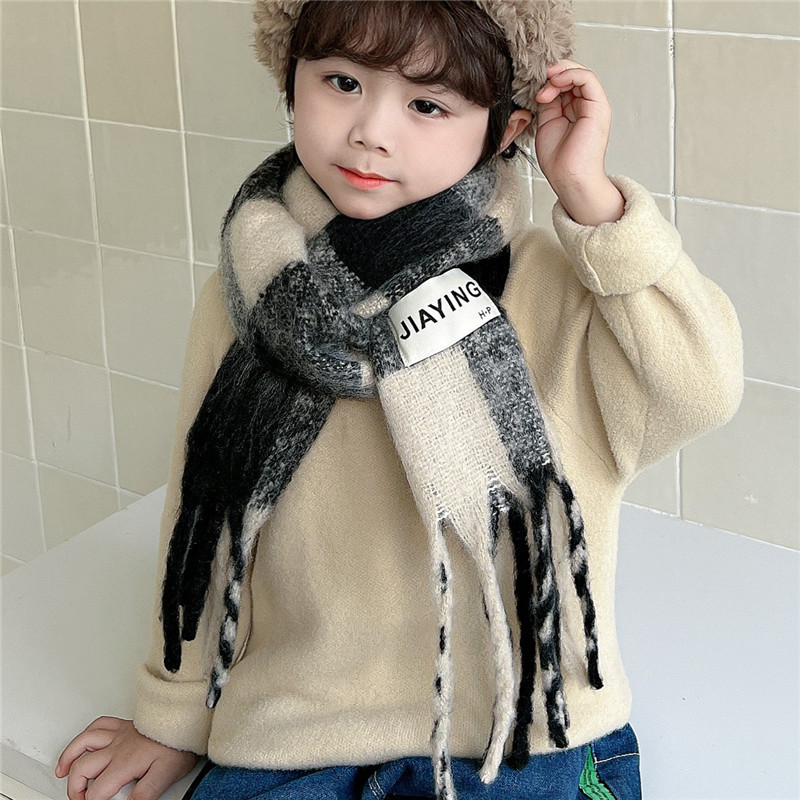 メーカー直販赤ちゃん格子マフラー冬高級感カラー格子マフラーファッションタイプ子供マフラー卸売り