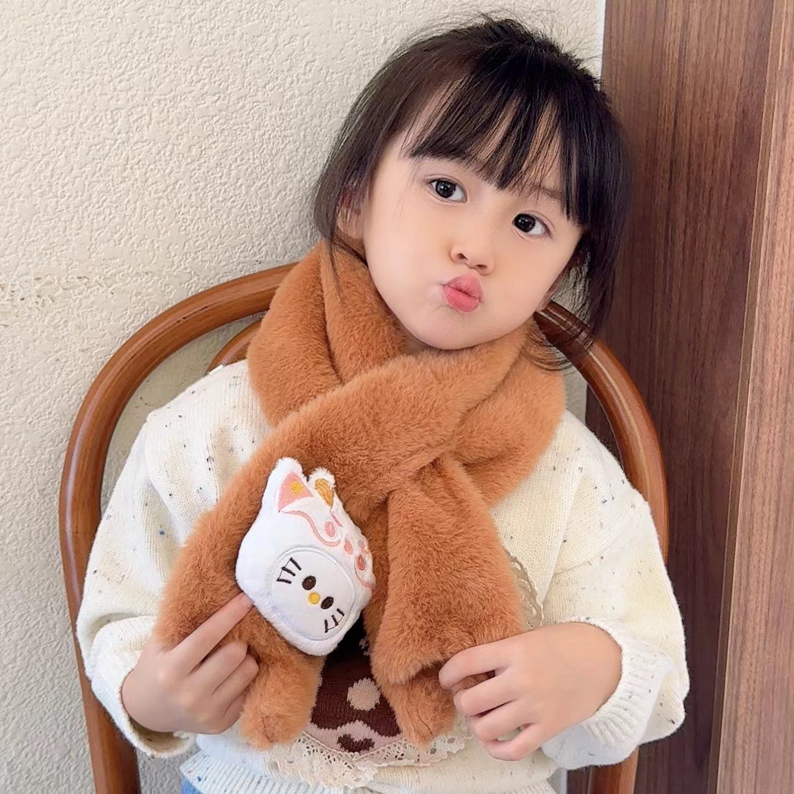2024新型子供のマフラー冬のアニメ子供の保温とベルベットはウサギの毛の男女の赤ちゃんに似せている