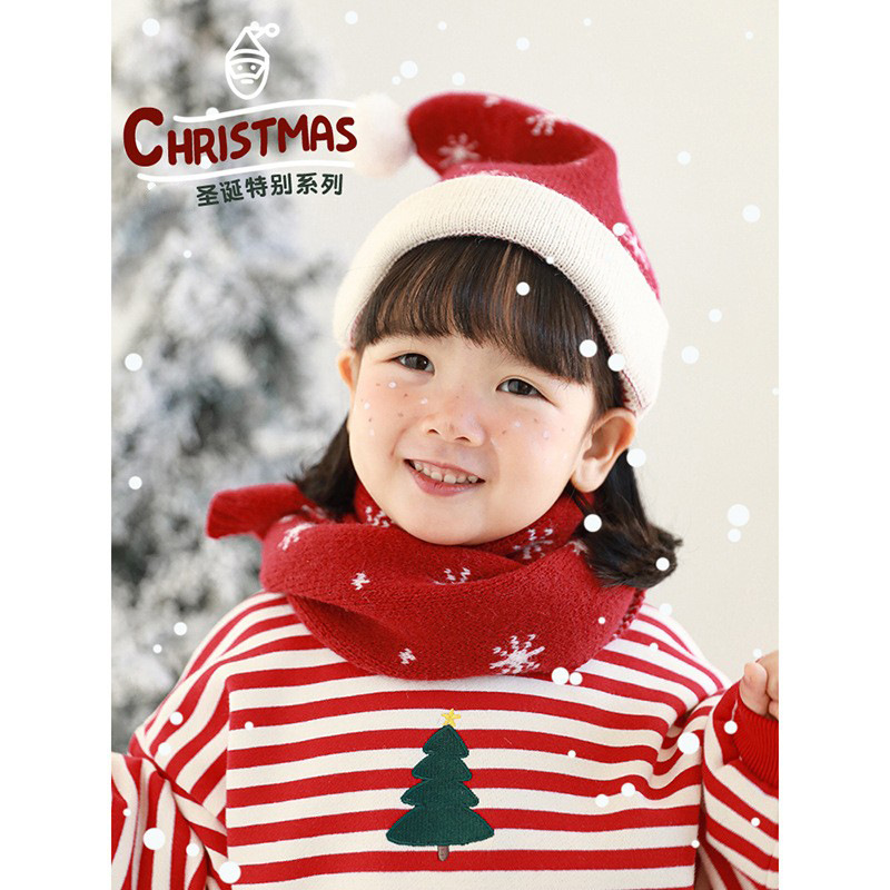 ウリブ一女児用胡麻模様クリスマスハット 冬の新作2025 可愛いぬいぐるみ素材 快適で暖かいベビースカーフ