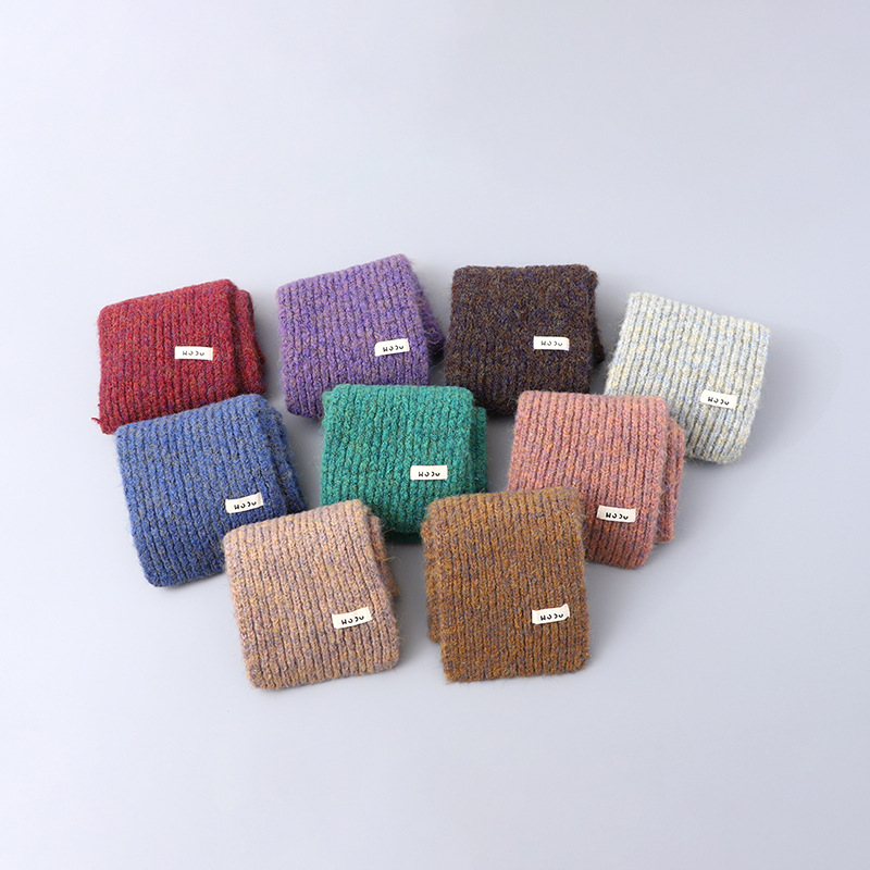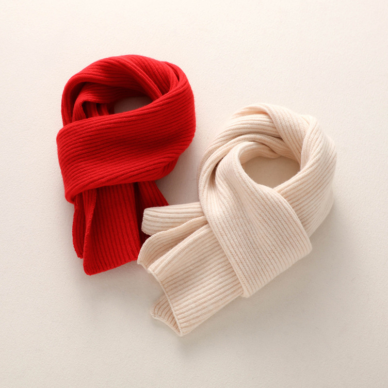 国境を越えて人気の高いウールの厚みのある子供用スカーフ、無地、シンプル、多用途、冬用暖かいニットスカーフ、男の子と女の子向け