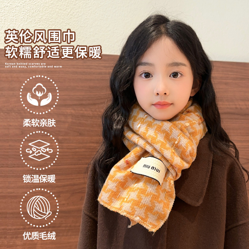 子供用マフラー秋冬女の子韓系百合千鳥格子巾女の子冬防風保温マフラー